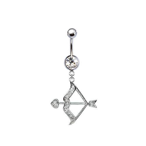 316L Surgical Steel CZ Bow and Arrow Dangle Belly Ring