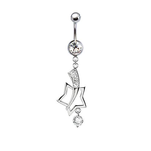 316L Surgical Steel Shooting Star Diamond CZ Dangle Belly Ring