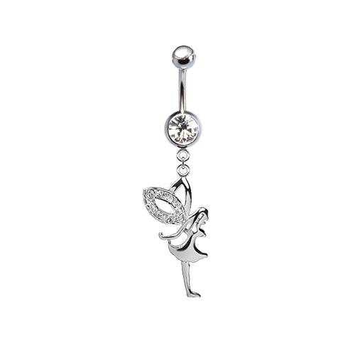 316L Surgical Steel Fairy with CZ Wing Dangle Belly Ring