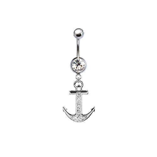 316L Surgical Steel CZ Anchor Dangle Belly Ring