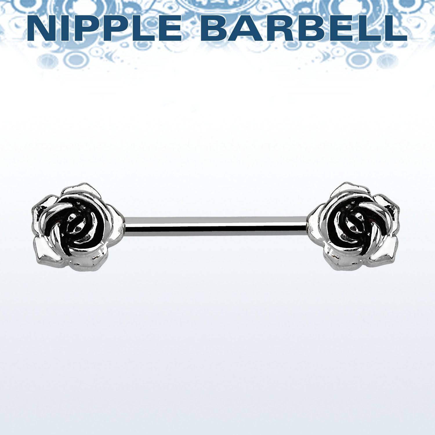 316L Surgical Steel Double Flower Rose Nipple Ring Straight Barbell