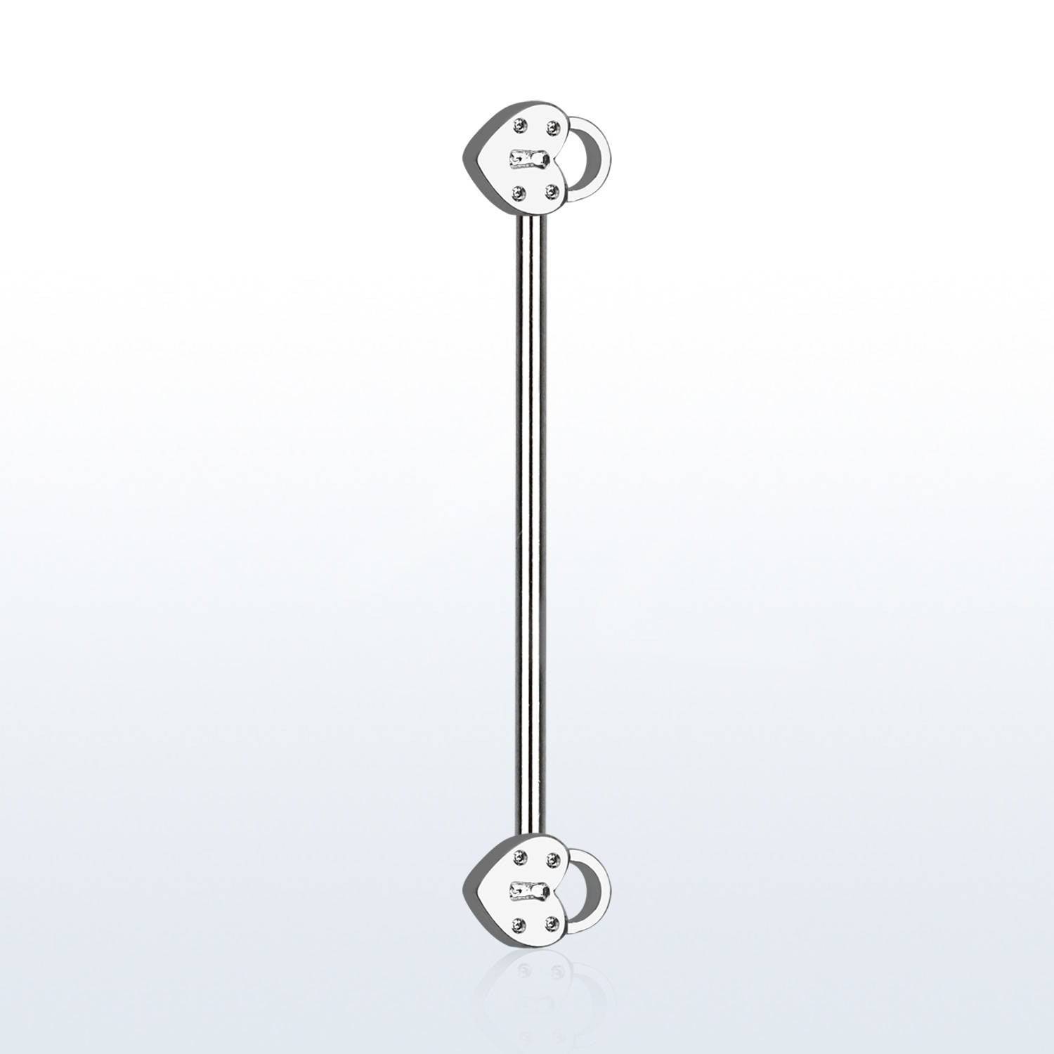 316L Surgical Steel Double Heart Lock Industrial Straight Barbell