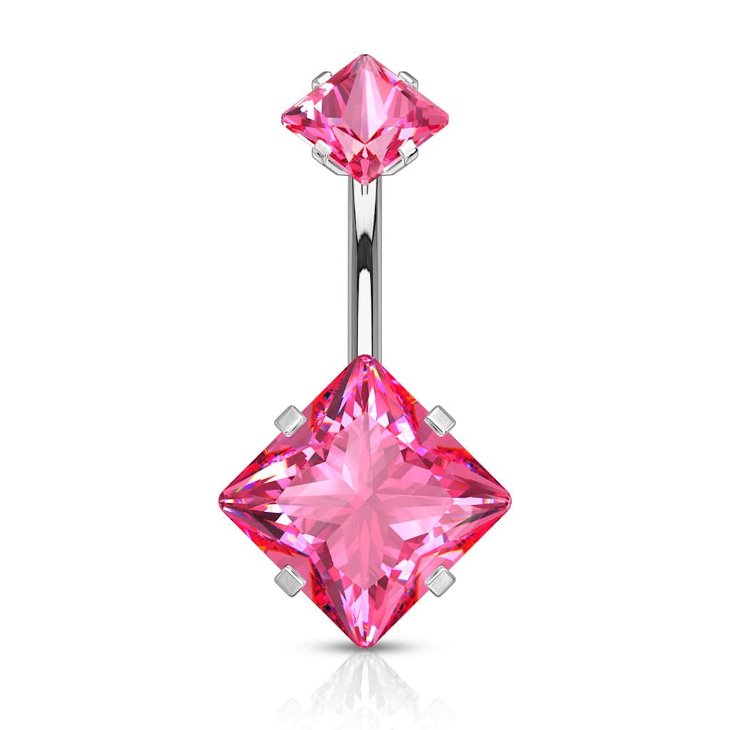 316L Surgical Steel Double Square Pink CZ Gem Belly Button Ring