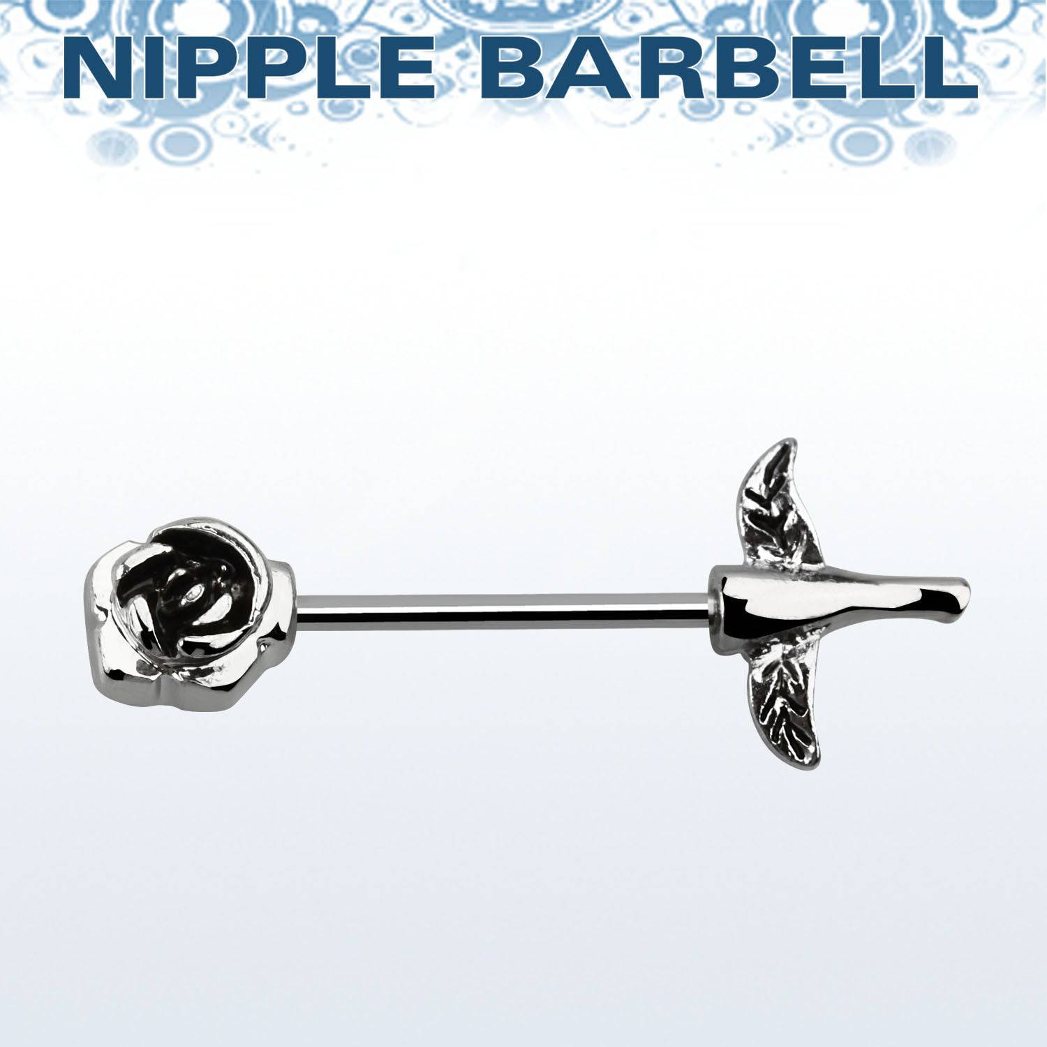 316L Surgical Steel Flower Stem Rose Nipple Ring Straight Barbell