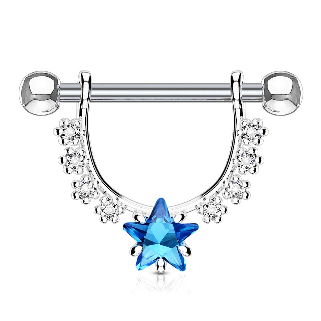316L Surgical Steel Star Dangle White & Blue CZ Nipple Ring Barbell