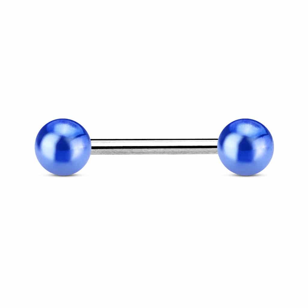 316L Surgical Steel Straight Barbell with Metallic Coated Blue Balls