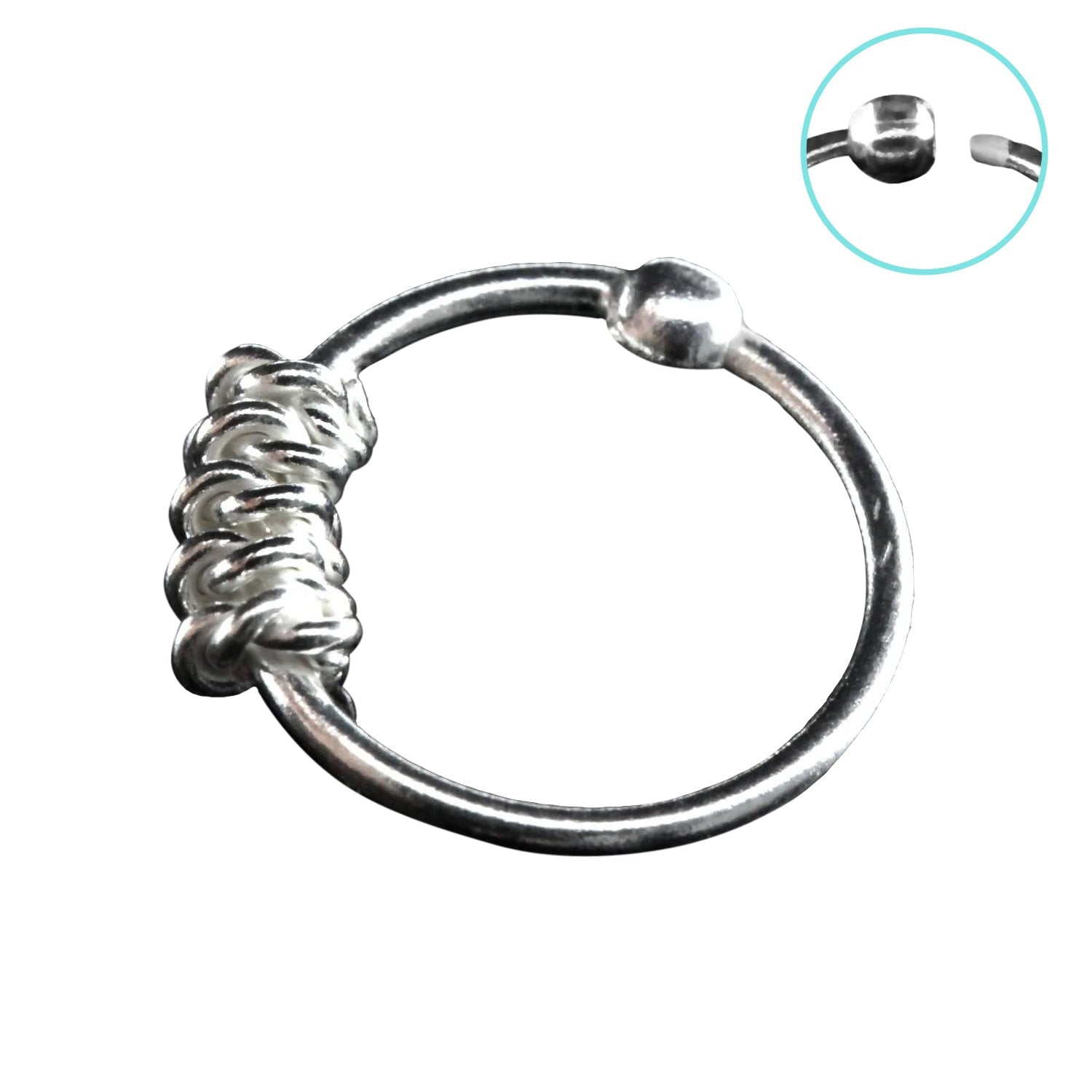 925 Sterling Silver Tribal Bead Nose Hoop Ring