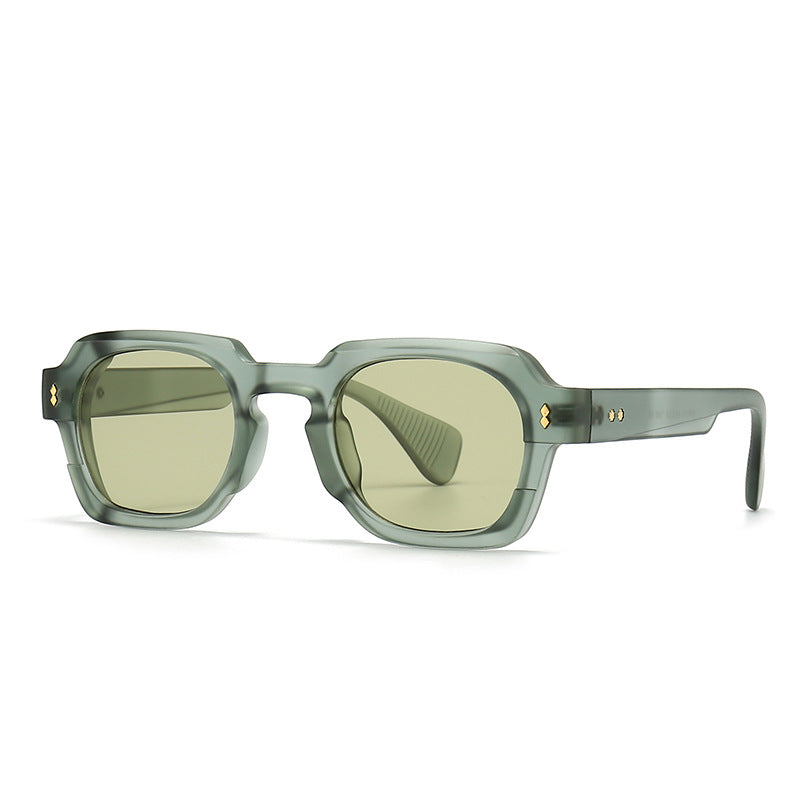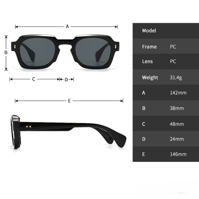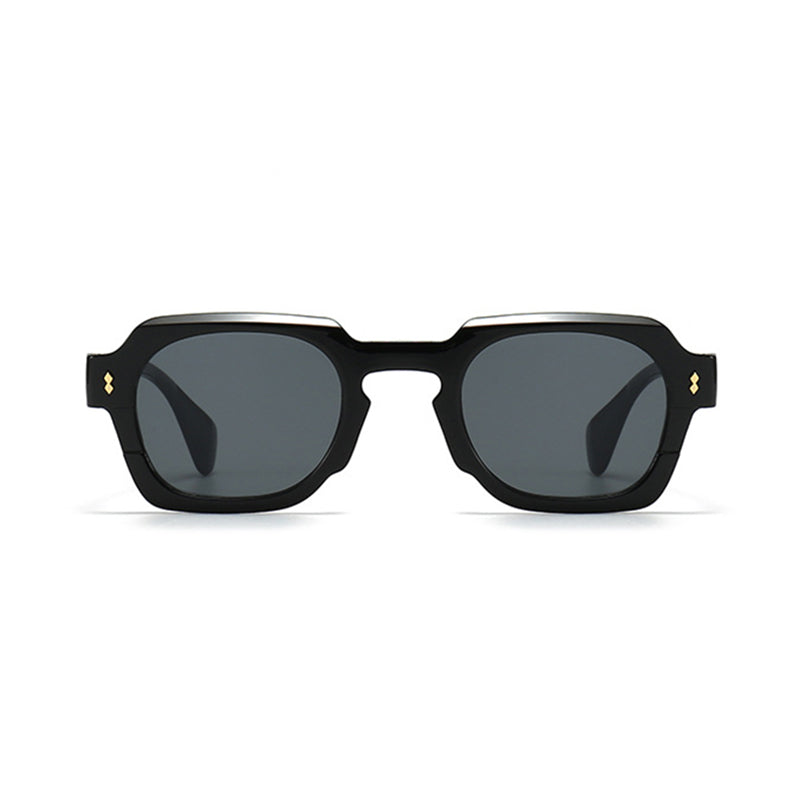 Make every outfit pop with these head-turning geometric sunglasses. featuring a bold chunky silhouette and eye-catching studs.