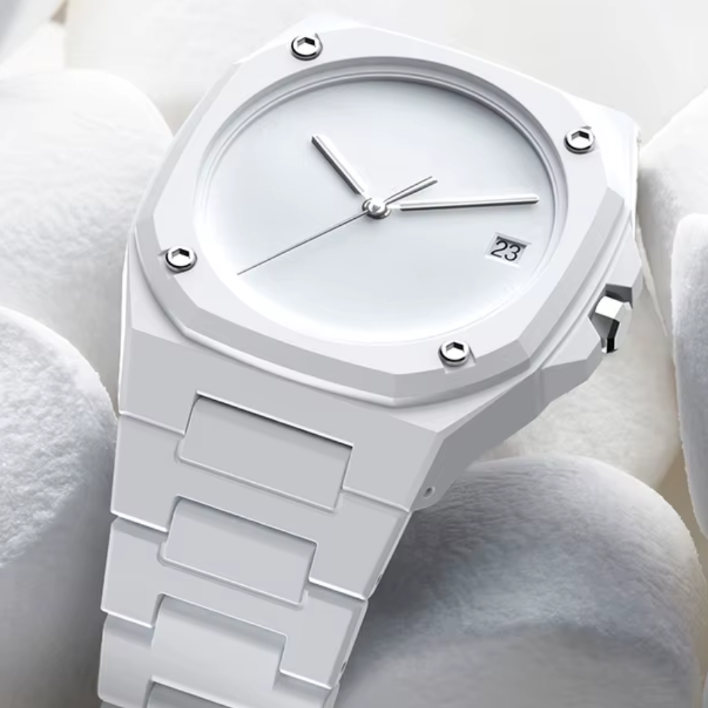 The pristine dial catches light across its pure surface. while the precision screws and crisp indices reflect the highest standards of watchmaking craft. Each thoughtful detail transforms our timepiece from a daily essential into an enduring statement of style.