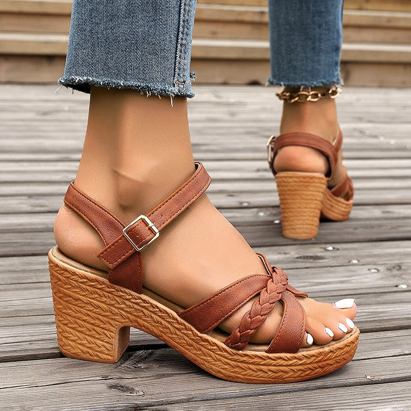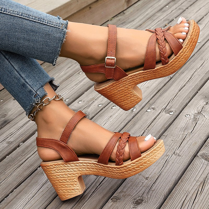 Keep your vacay vibe seriously chic this season with these woven sandals. featuring a braided strap and a sturdy block heel that combines comfort with all-day ease—what more could you want? These heeled sandals are perfect for everything from brunch to beach days.