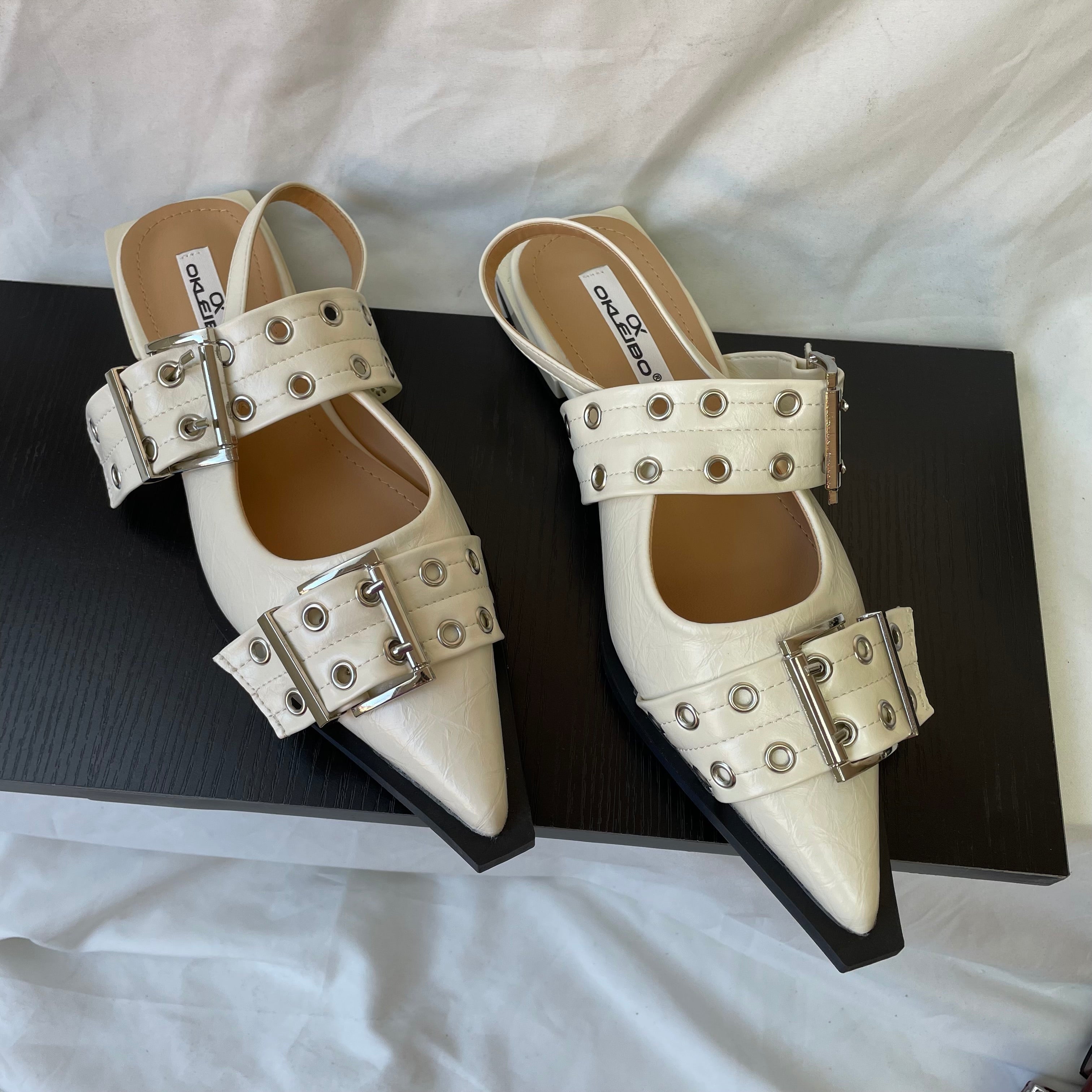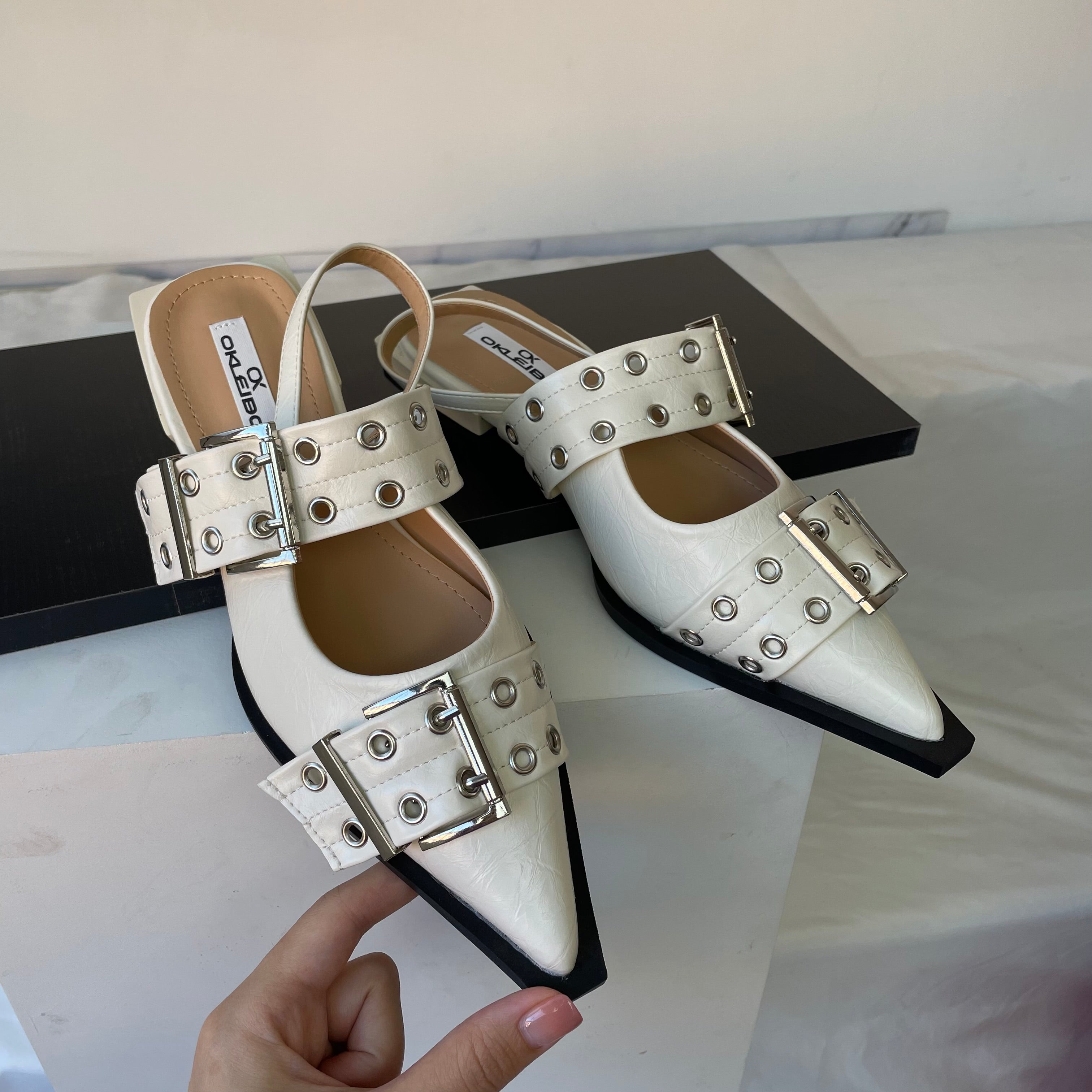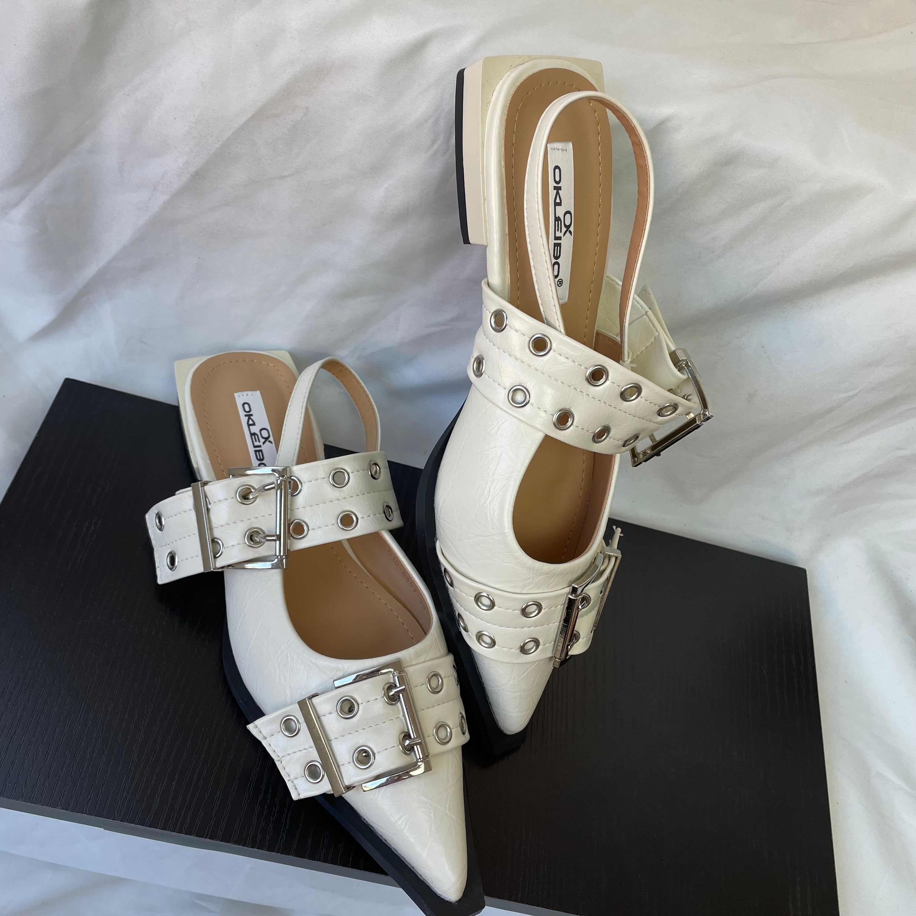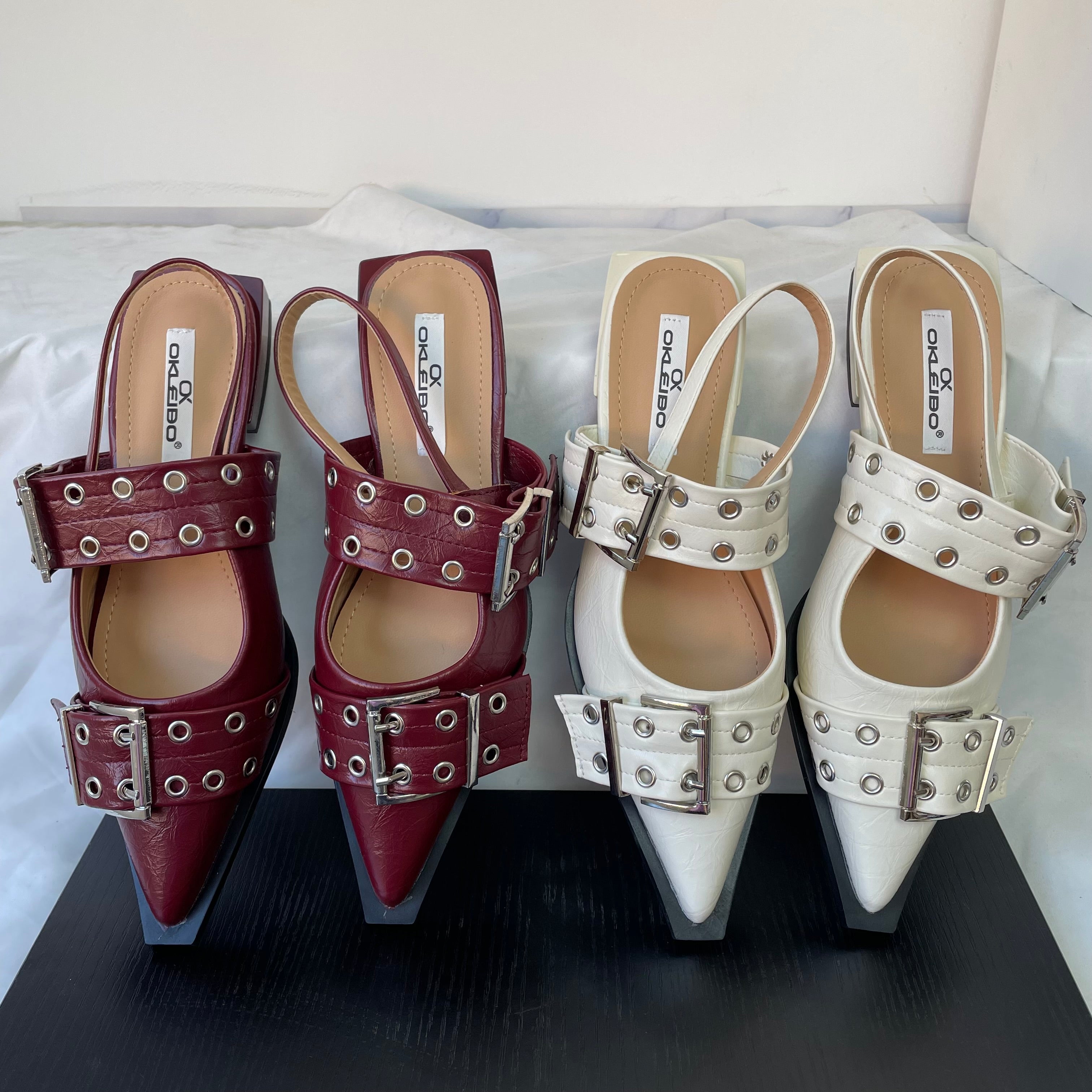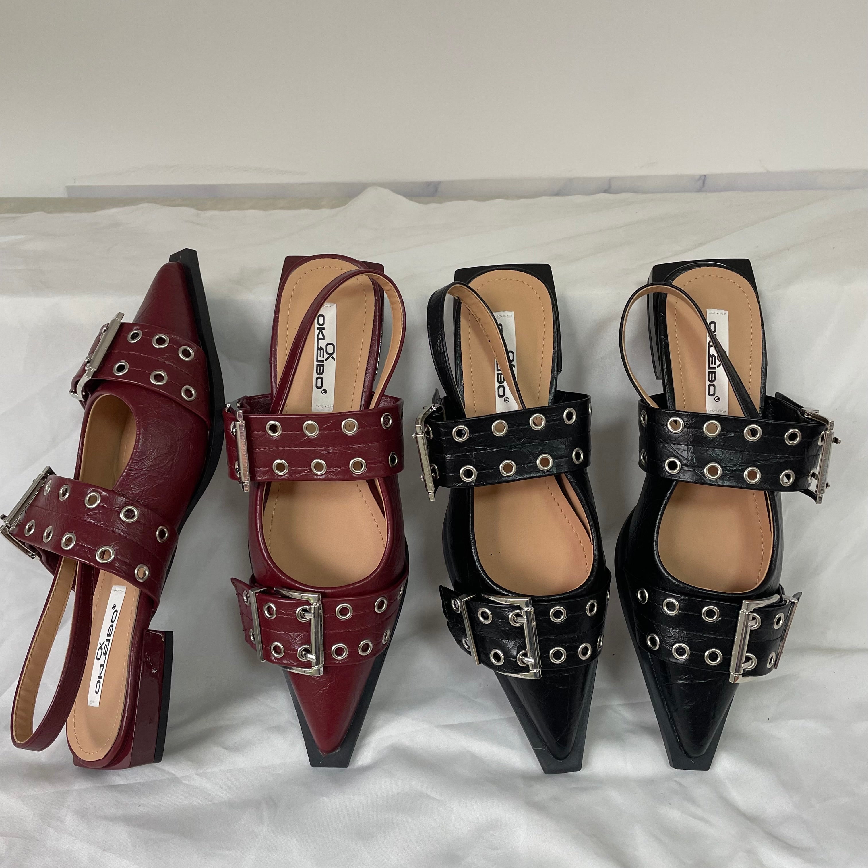 Dependable and undeniably elegant. these studded heels combine a soft leather-like touch with a sturdy build for all-day comfort. The adjustable buckles and slingback strap offer a custom fit. while the spacious design ensures no squeezing or discomfort. With a cushioned insole and a non-slip sole. you'll stay comfortable and confident from day to night.