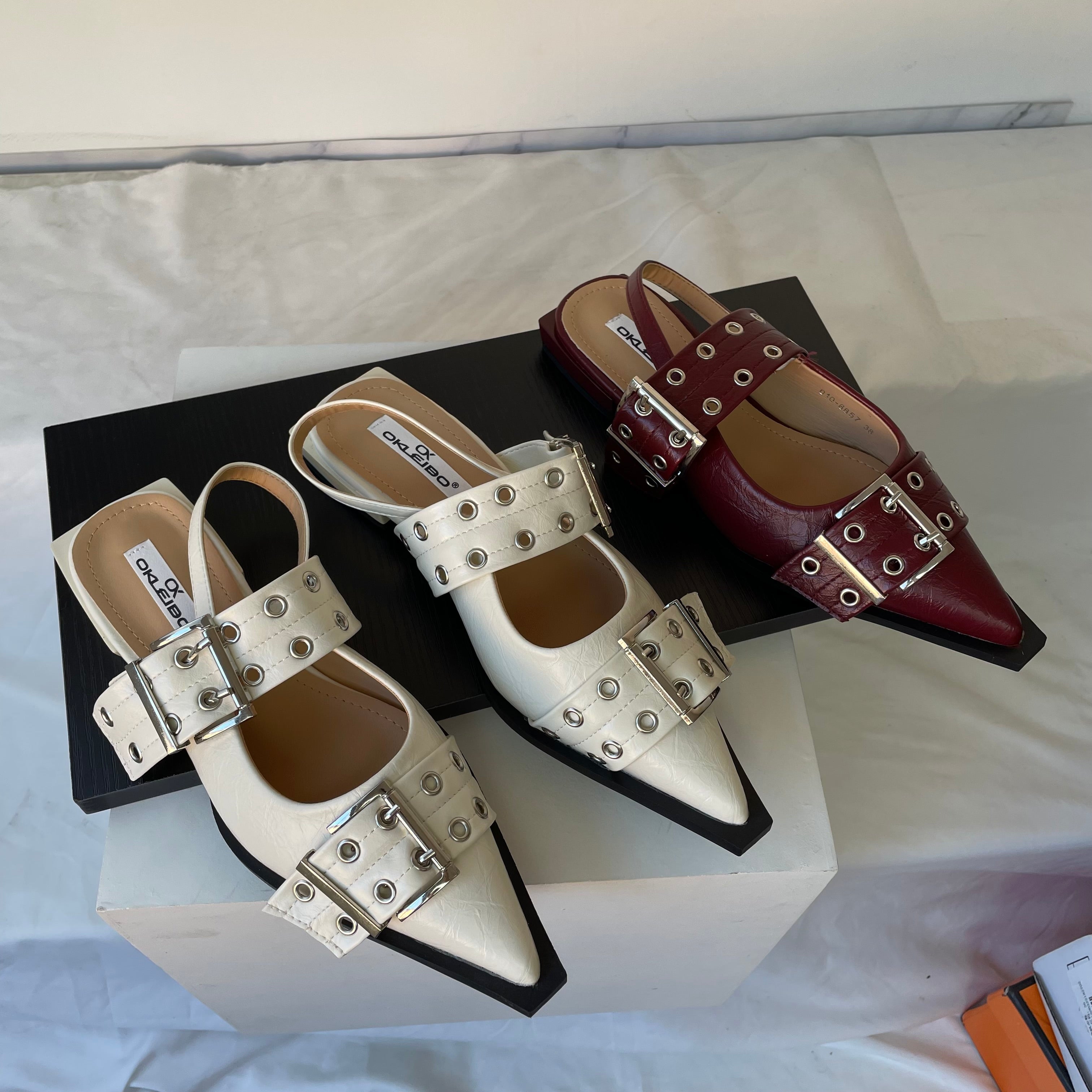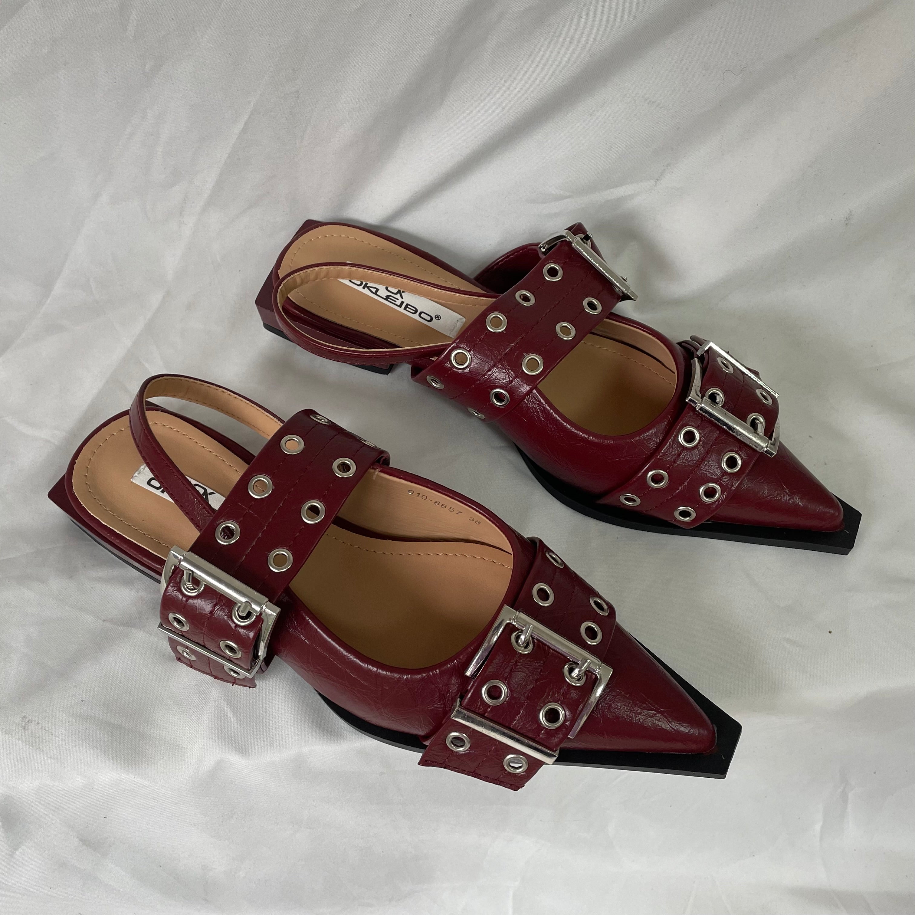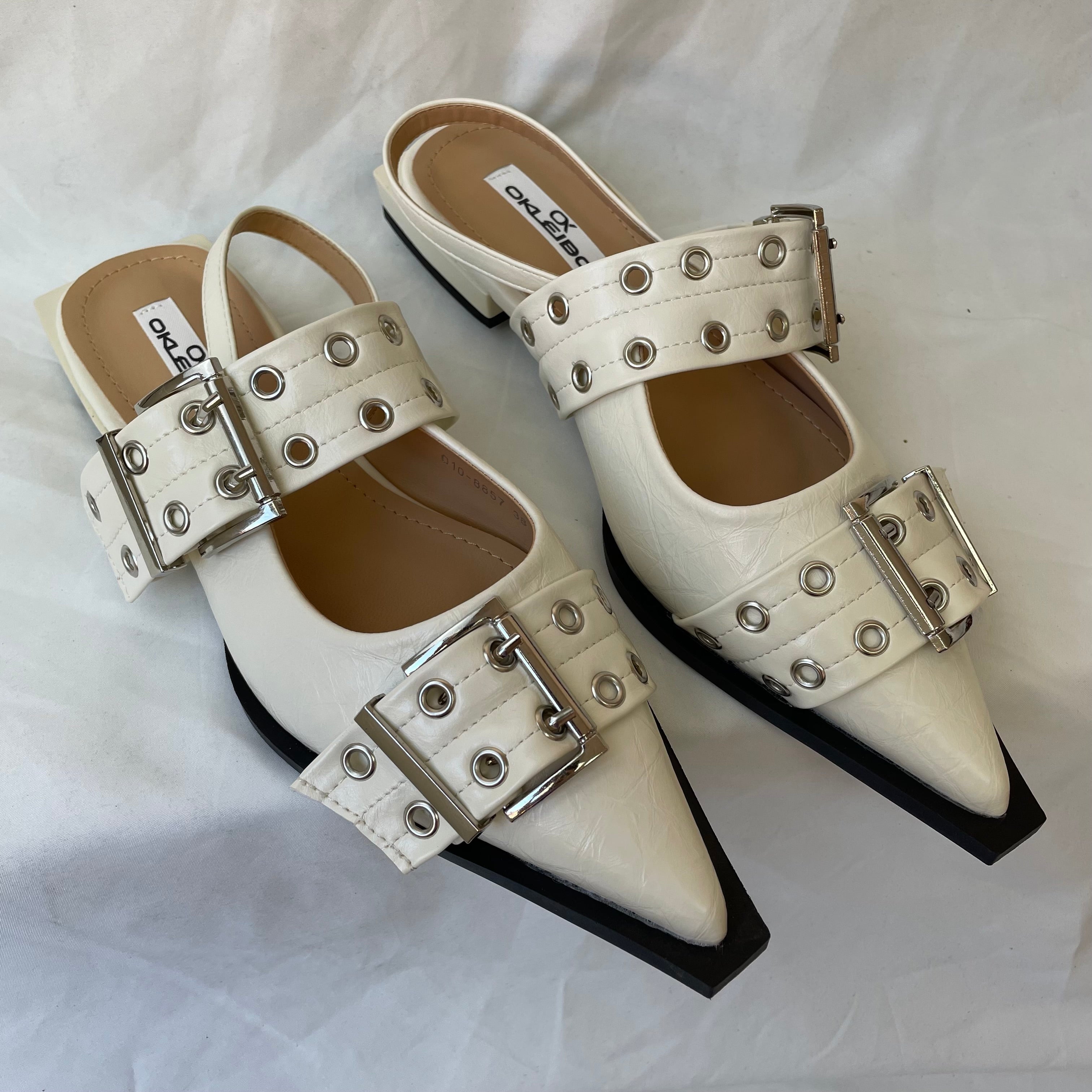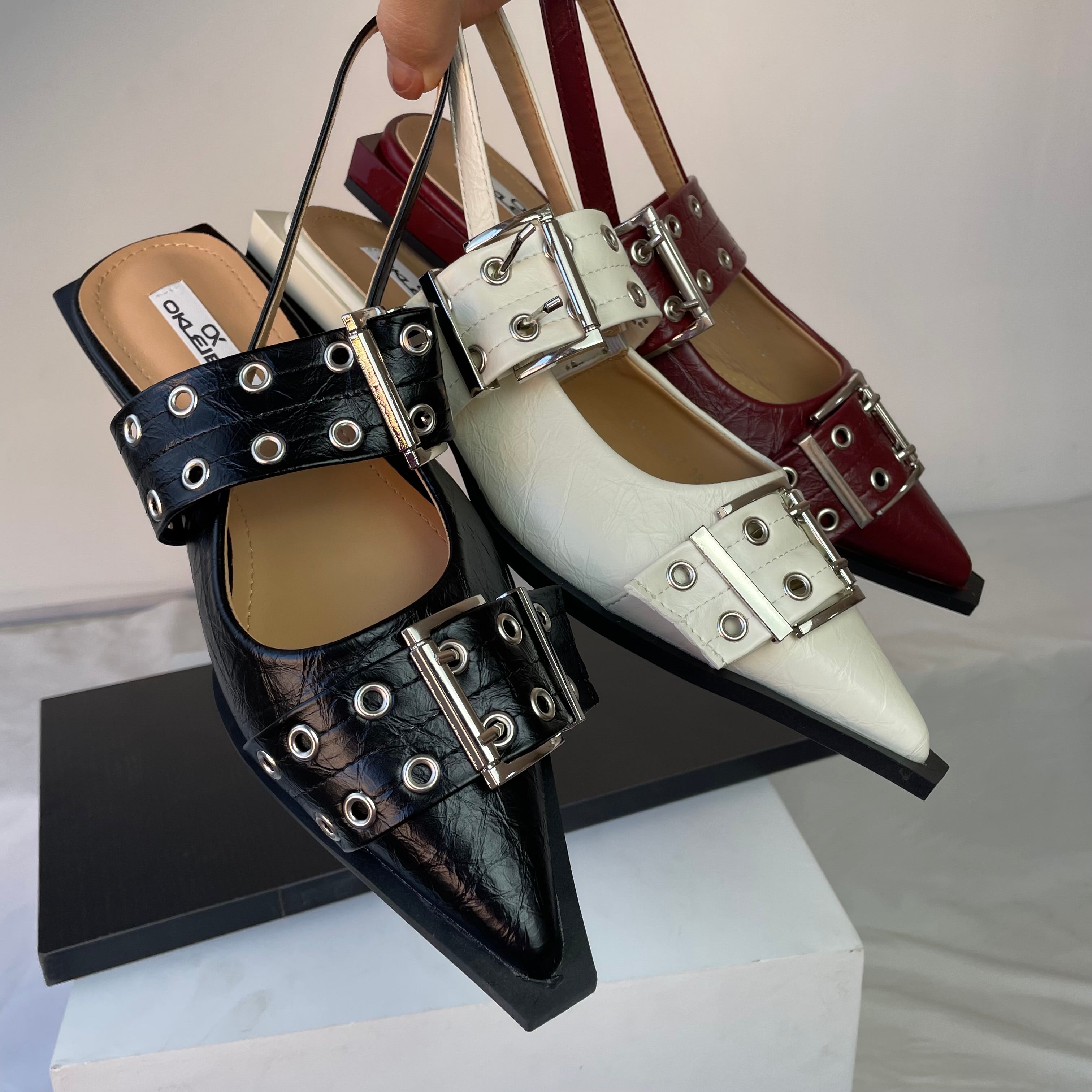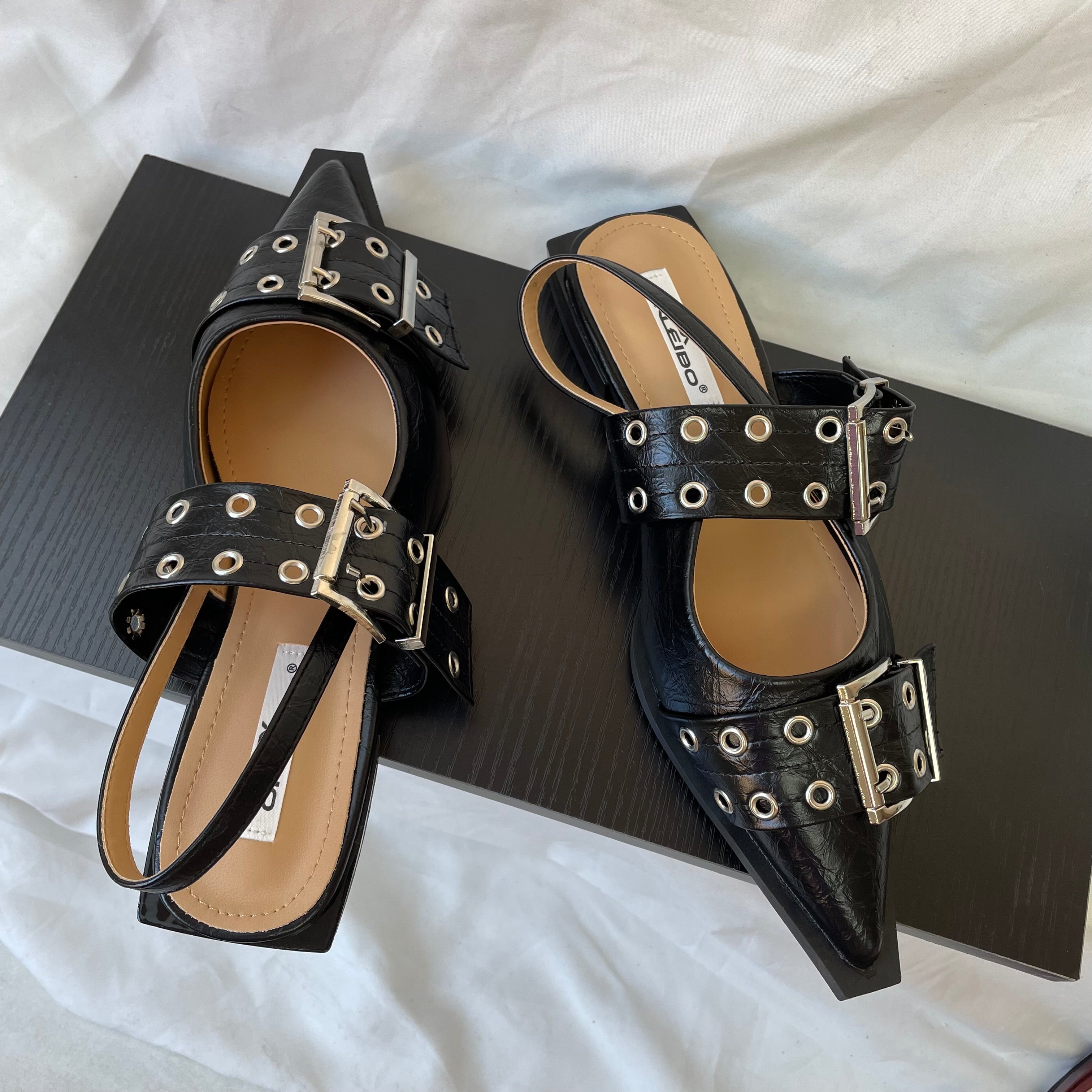 Dependable and undeniably elegant. these studded heels combine a soft leather-like touch with a sturdy build for all-day comfort. The adjustable buckles and slingback strap offer a custom fit. while the spacious design ensures no squeezing or discomfort. With a cushioned insole and a non-slip sole. you'll stay comfortable and confident from day to night.