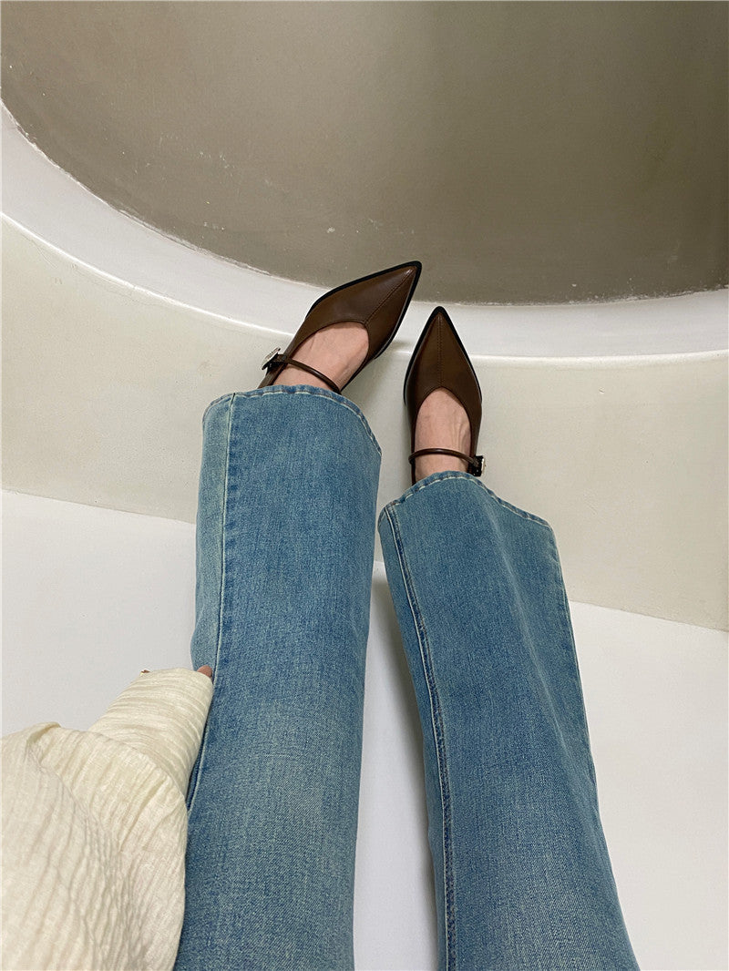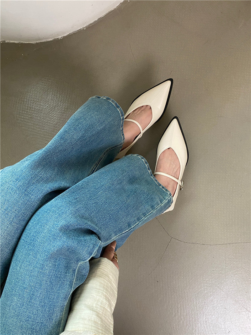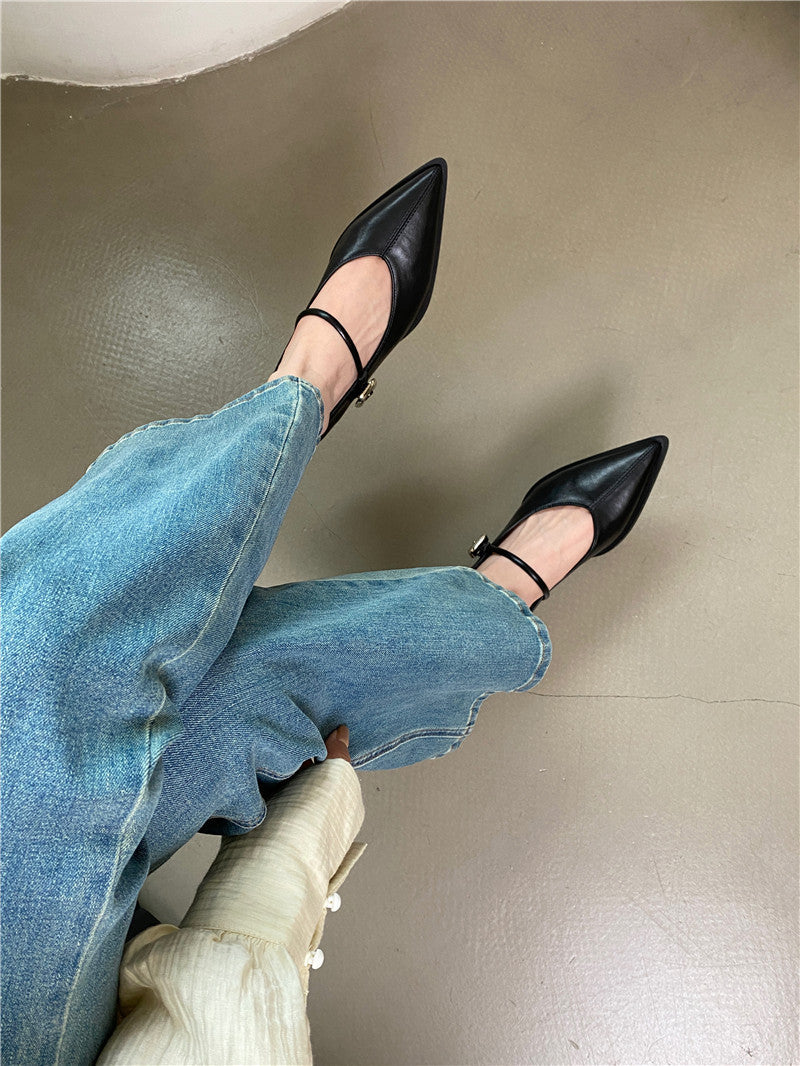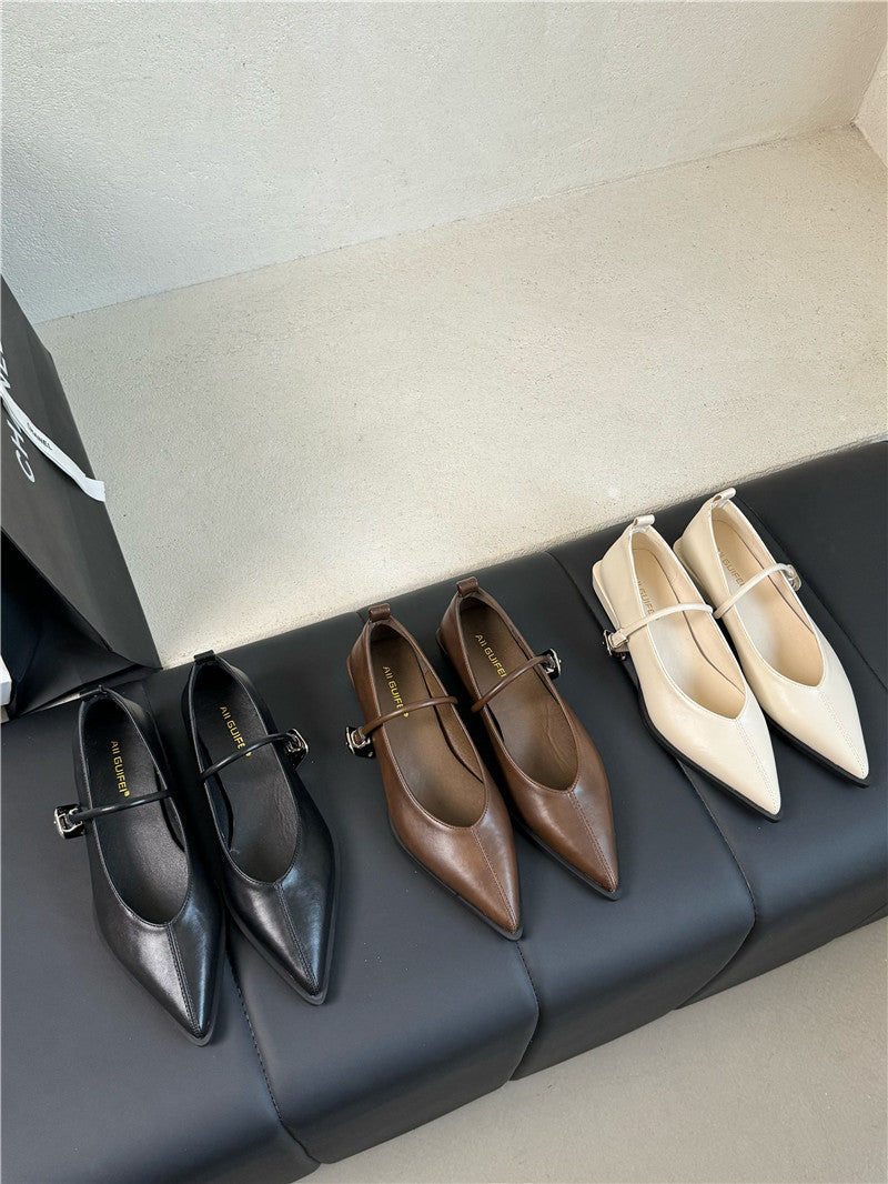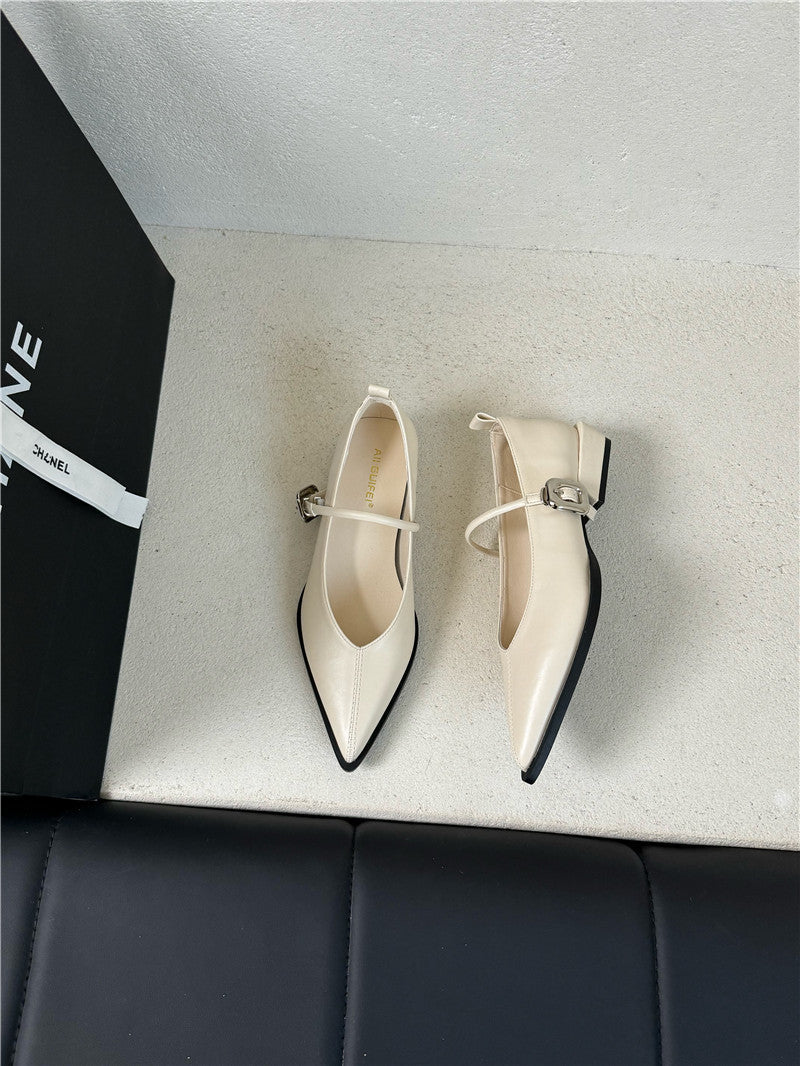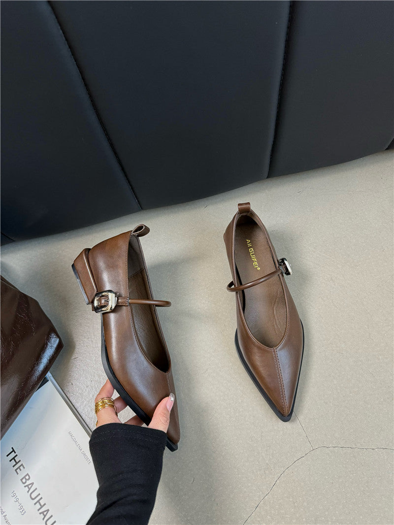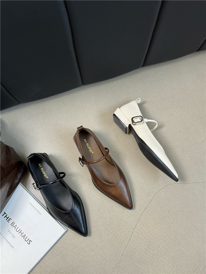 Dependable and undeniably elegant. these pointed-toe flats feature a buckle strap for a personalized fit that accommodates swelling. The cushioned insoles and arch support ensure comfort even on those long days where you're on your feet. while the leather finish matures beautifully over time. With a block heel for added stability and a design that's easy to clean. they're ready to keep up with you—no matter how many steps (or dance moves) you take!