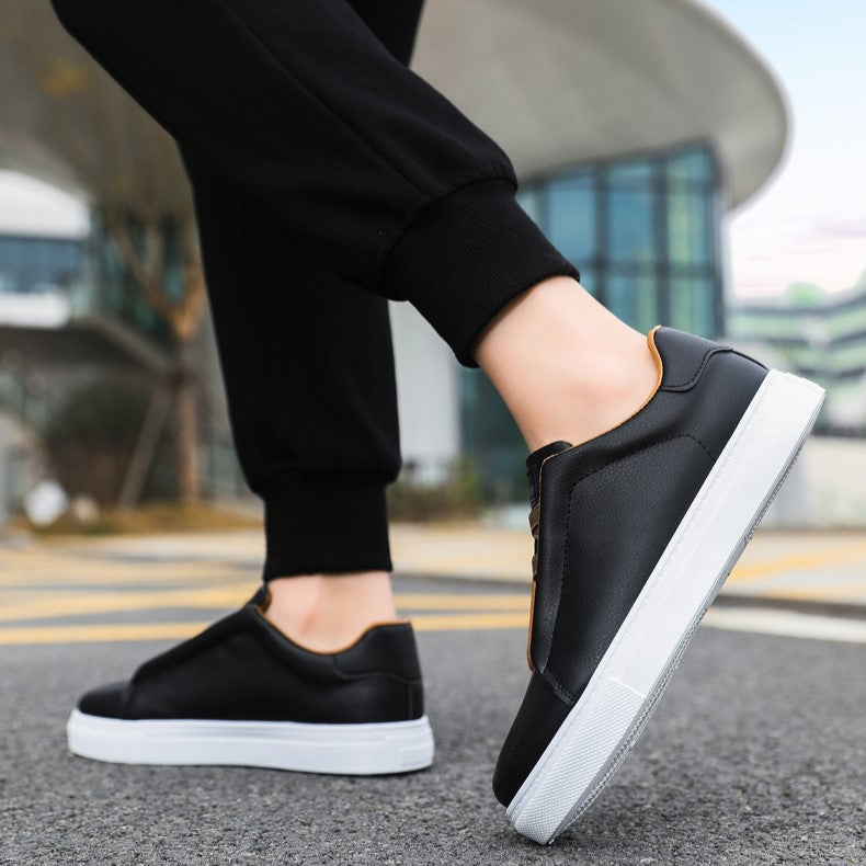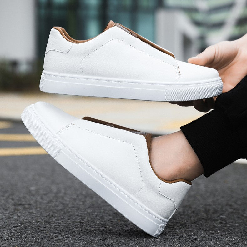 Sleek design. effortless comfort—these sneakers are crafted with a breathable. leather-like upper that molds to your feet over time. offering moisture control to keep you cool throughout the day. The cushioned interior ensures all-day comfort. while durable rubber soles provide lasting grip and performance. no matter how hard you go. Perfect for any occasion. they slip on with ease. making them your go-to pair whether you're at work. hanging with friends. or on the move.