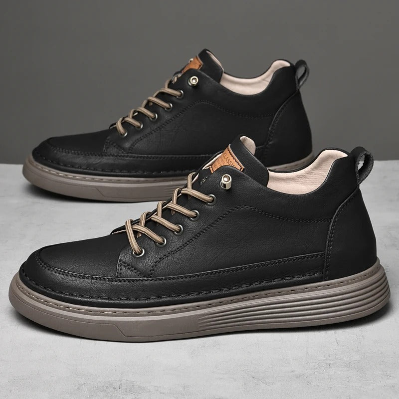 Finest genuine leather with pre-tied laces give this sneaker a refined. ready-to-wear look. furnished with an arch-supporting. cushioned footbed for unmatched comfort.