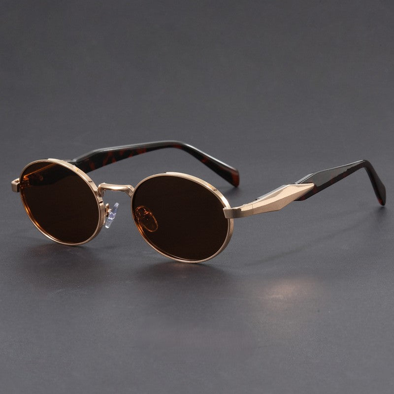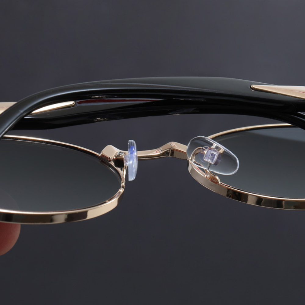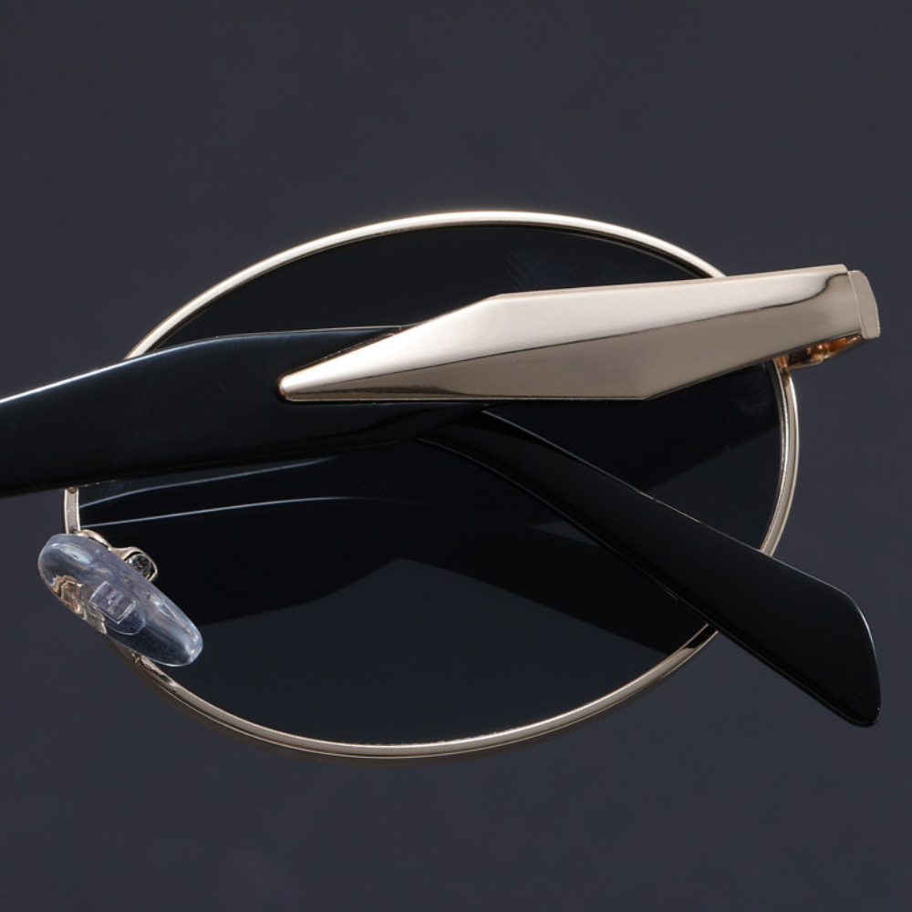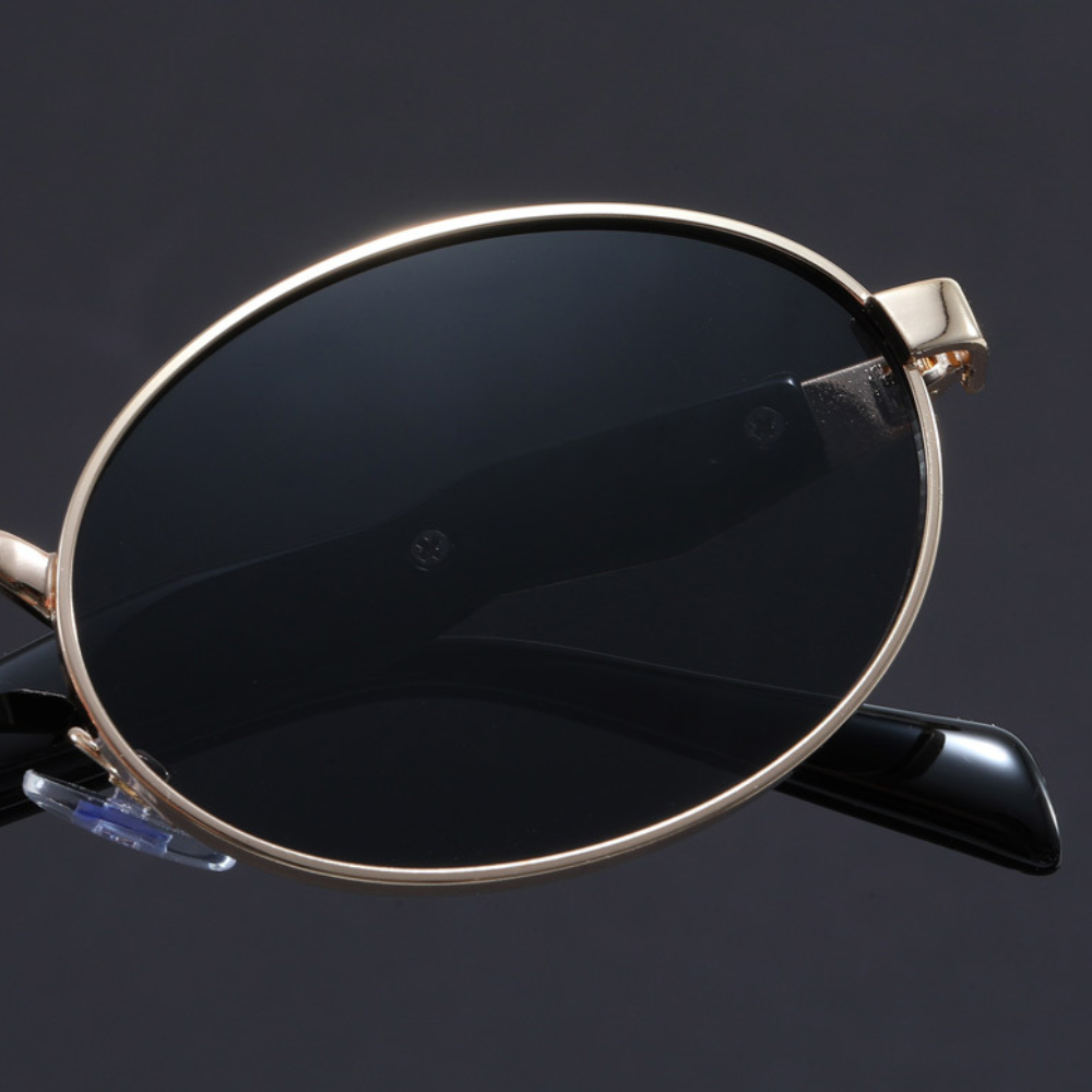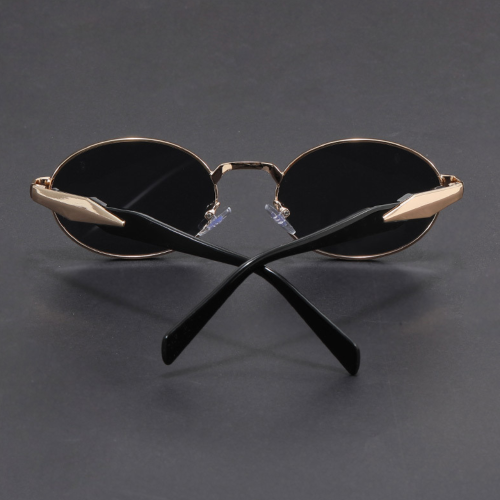 Enjoy every moment under the sun to the fullest with these vintage-inspired sunglasses. The sleek metal frame offers a refined look. complemented by retro-inspired round lenses and sculpted arms with a bold finish for a striking statement. Let's not forget about the nose pads. engineered with cutting-edge comfort technology to ensure a perfect fit. no matter how long the day lasts.