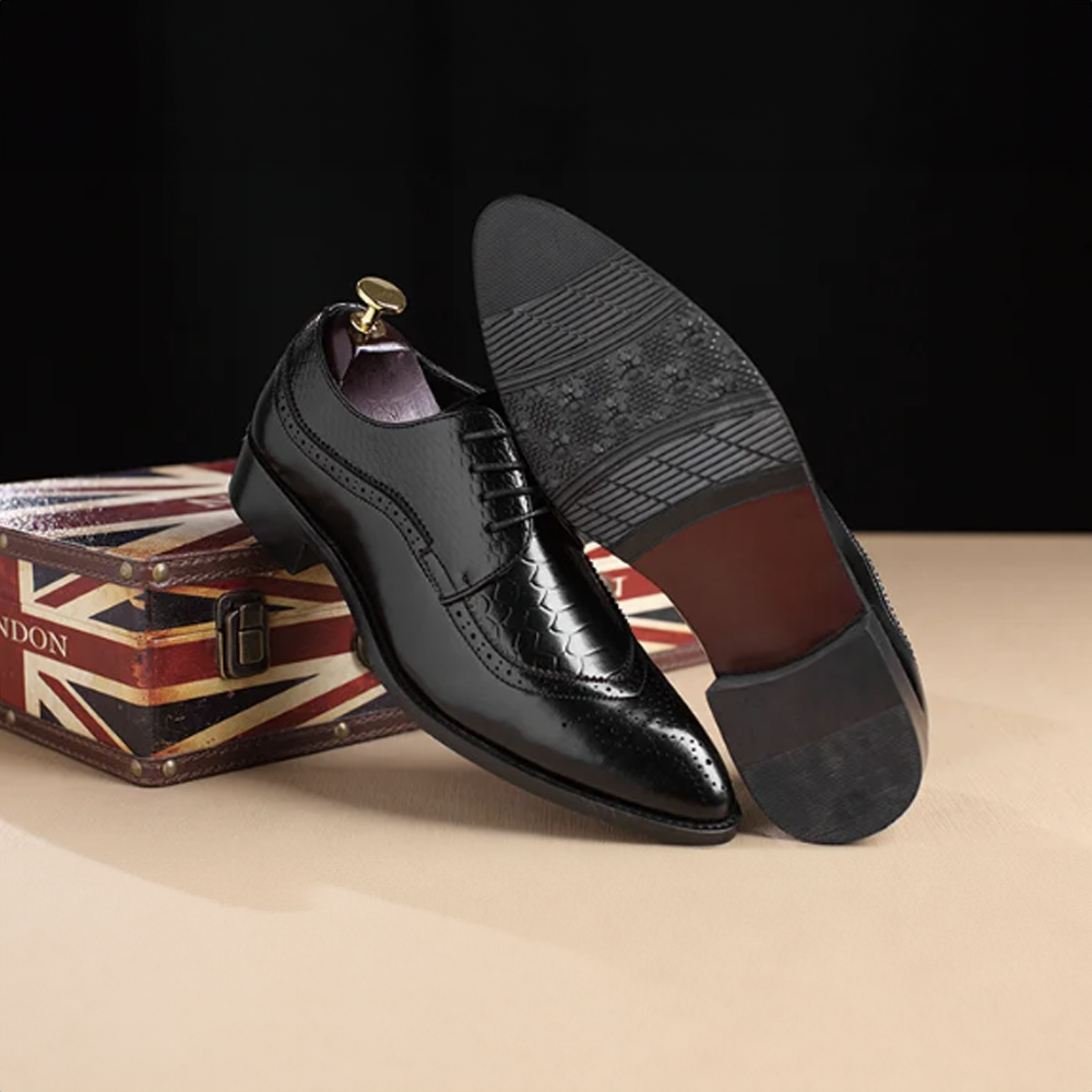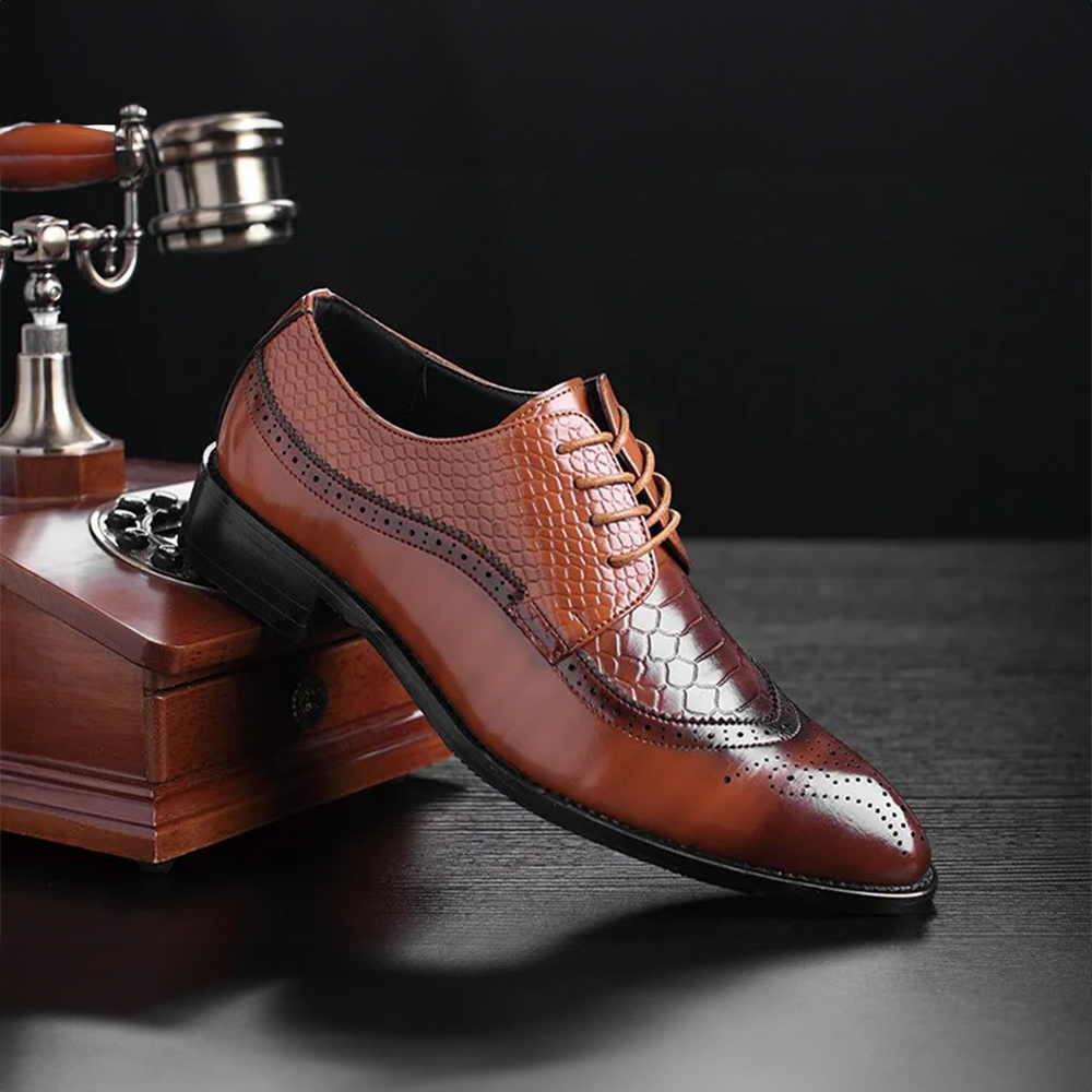 Handcrafted with a striking snakeskin pattern and a blend of polished. textured detailing and meticulous stitching. These Brogue Oxfords feature an impact-absorbent. cushioned insole ensuring all-day comfort.