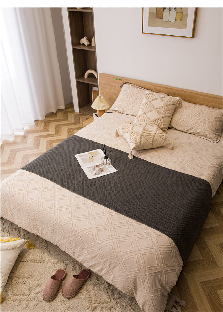 Inviting and charming with its playful tassel fringe. this cozy knitted throw blanket blends warmth and style effortlessly. crafted from a premium cotton blend with an ultra-soft. gently weighted feel that drapes beautifully over any sofa or chair.