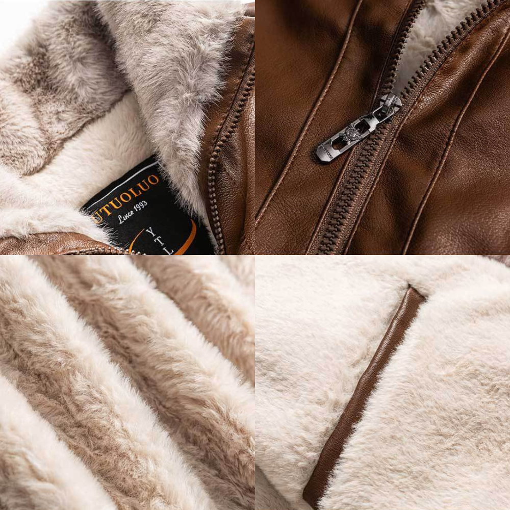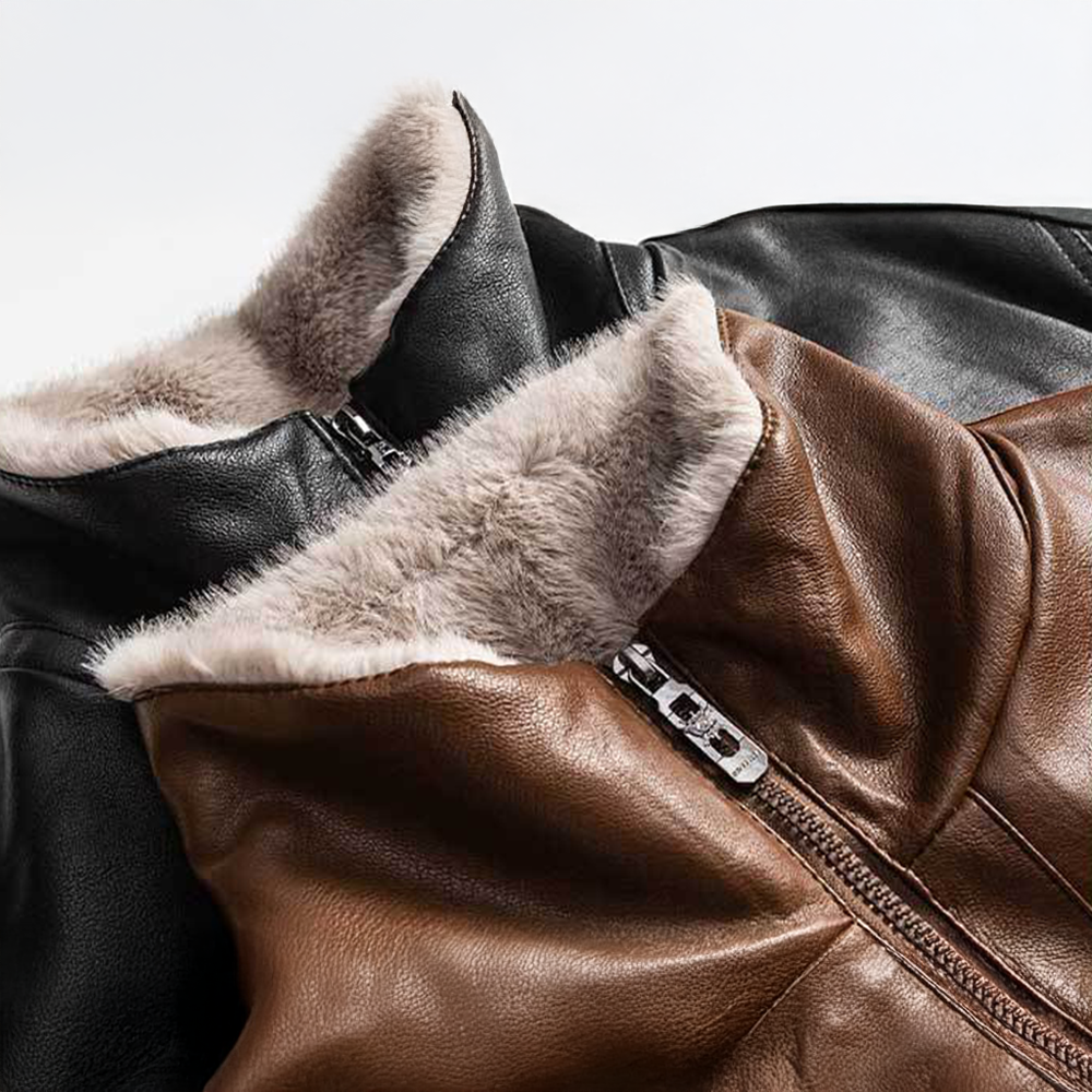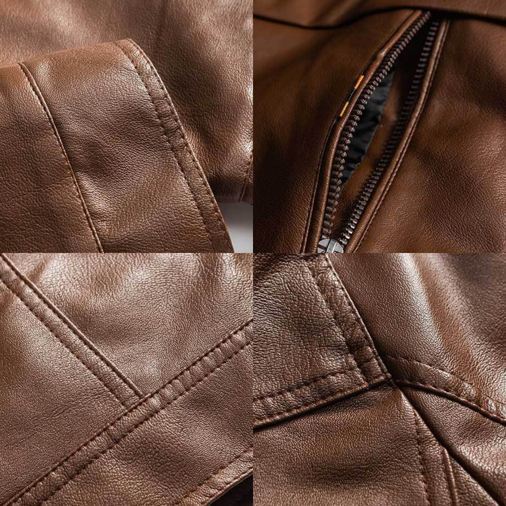 Made from soft leather that's been carefully treated for a smooth. polished finish and topped with a weather-resistant coating. this jacket feels as good as it looks. The leather is reinforced with double stitching for extra strength. while the cozy fleece lining keeps you warm on the coldest days.