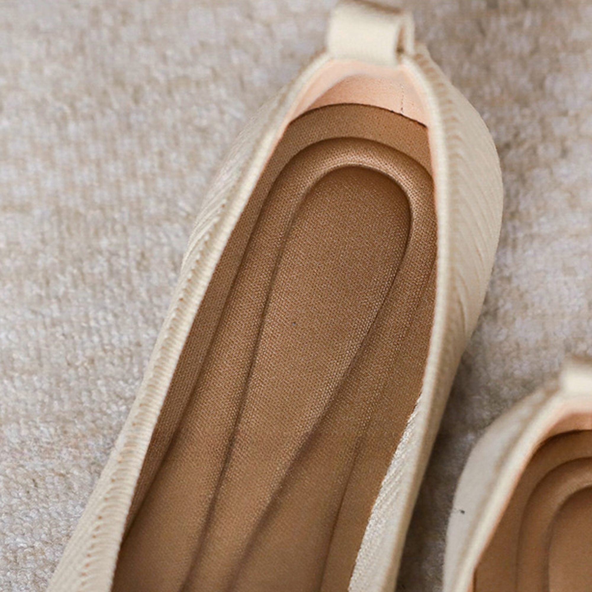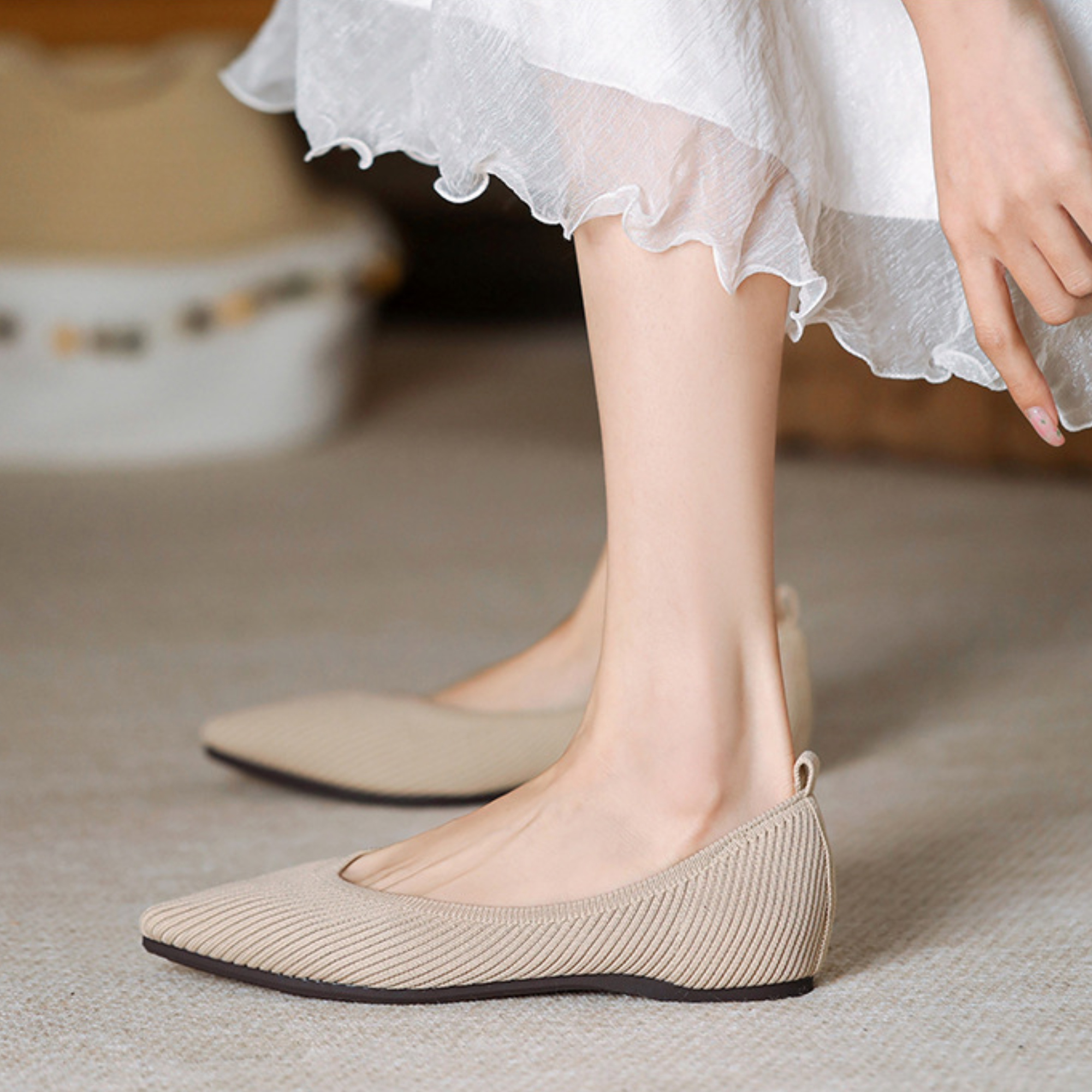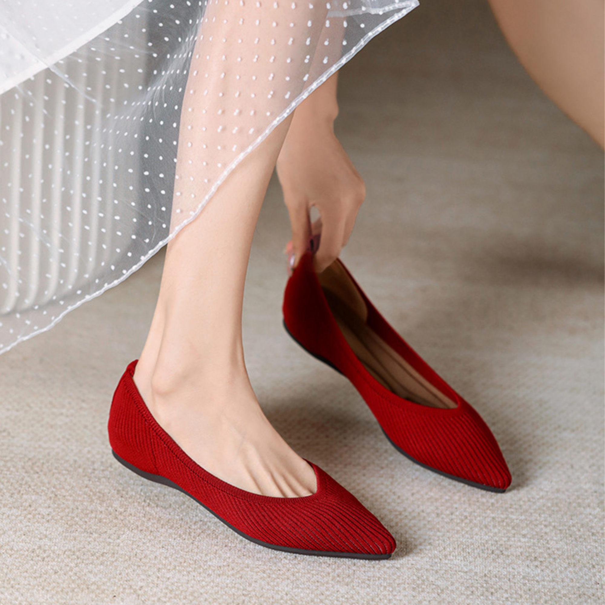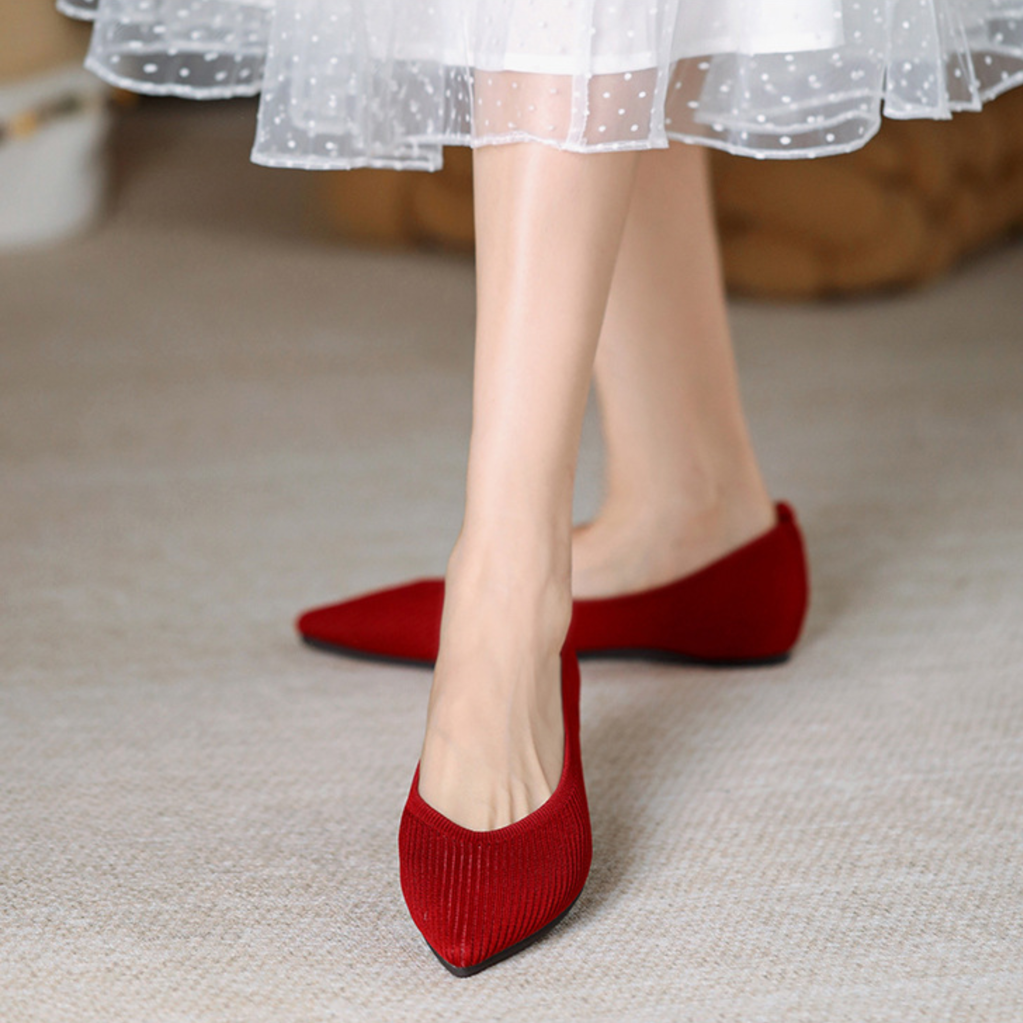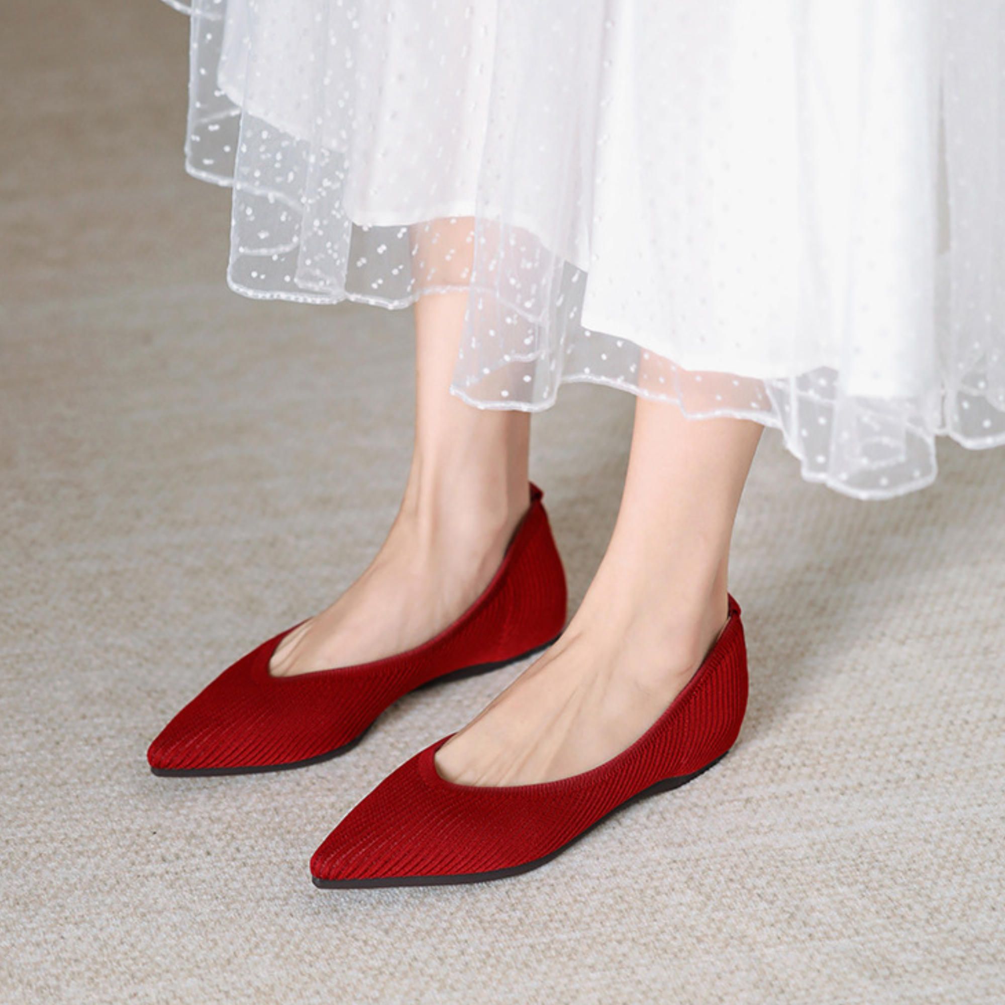 Spring-Inspired Cherry Blossom Ballet Flats boast seasonal charm with a gentle ribbed cotton texture and a sleek. minimalistic silhouette. Furnished with a cushioned insole and an impact-absorbing outsole for all-day wear and comfort.