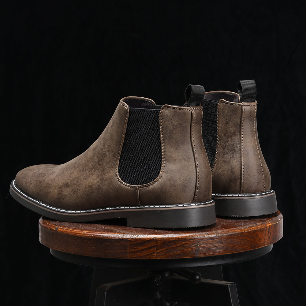 Step into easy-going style with these Chelsea boots. designed to keep up with your everyday hustle. The lightweight design and cushioned. flexible sole provide all-day comfort. while the leather-like finish not only ages beautifully but is also built to withstand daily wear. Slip them on with ease thanks to elastic panels that stay snug and keep their stretch. wear after wear.