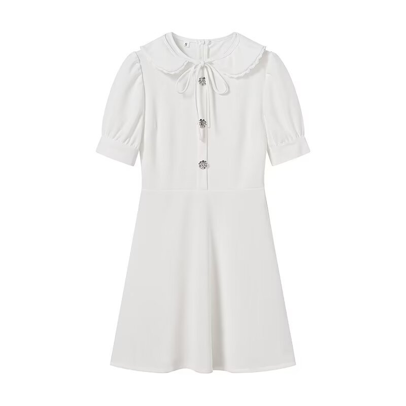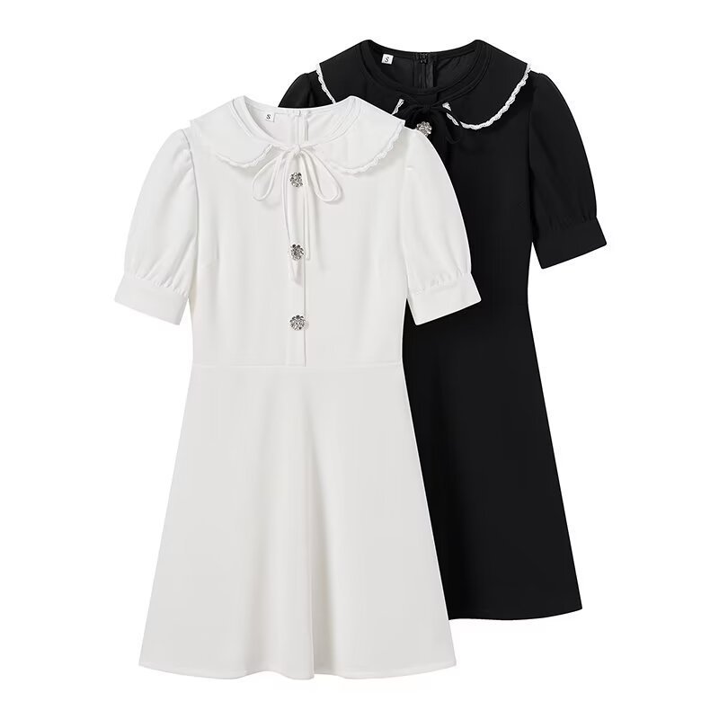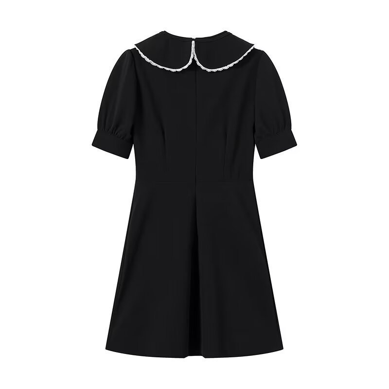 Delicate lace trim along the neckline and waistline adds a romantic. vintage-inspired touch. The classic A-line silhouette creates an hourglass shape that flatters every figure.