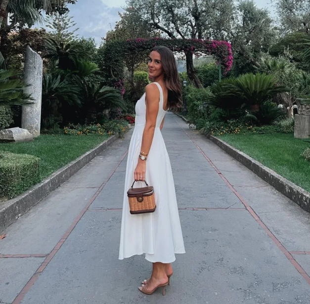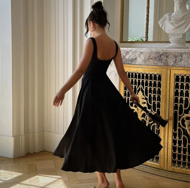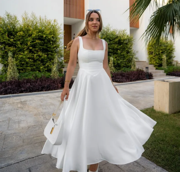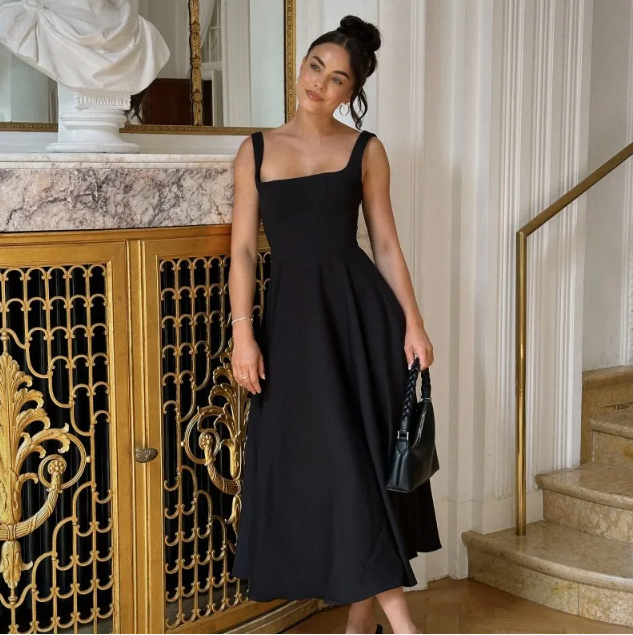 Discover timeless elegance with the Chloé Sleeveless Square Neck Dress. This chic dress is the epitome of sophistication. featuring a flattering square neckline and delicate spaghetti straps that exude understated charm. The built-in cups offer perfect support. sculpting a graceful silhouette that complements any figure.
