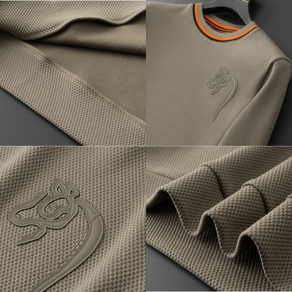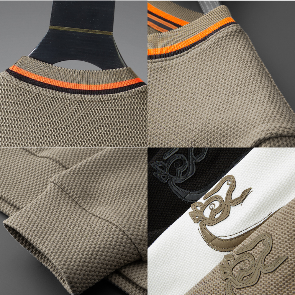 Made from the finest cotton blend. this sweater feels as good as it looks. Its breathable honeycomb texture keeps you comfortable. while the tri-tone collar adds just the right amount of character.