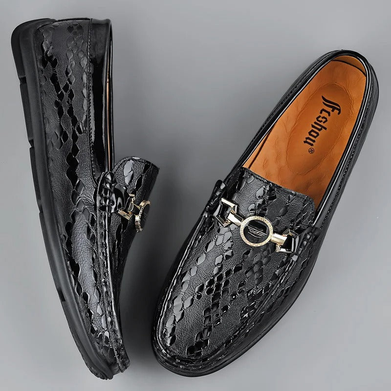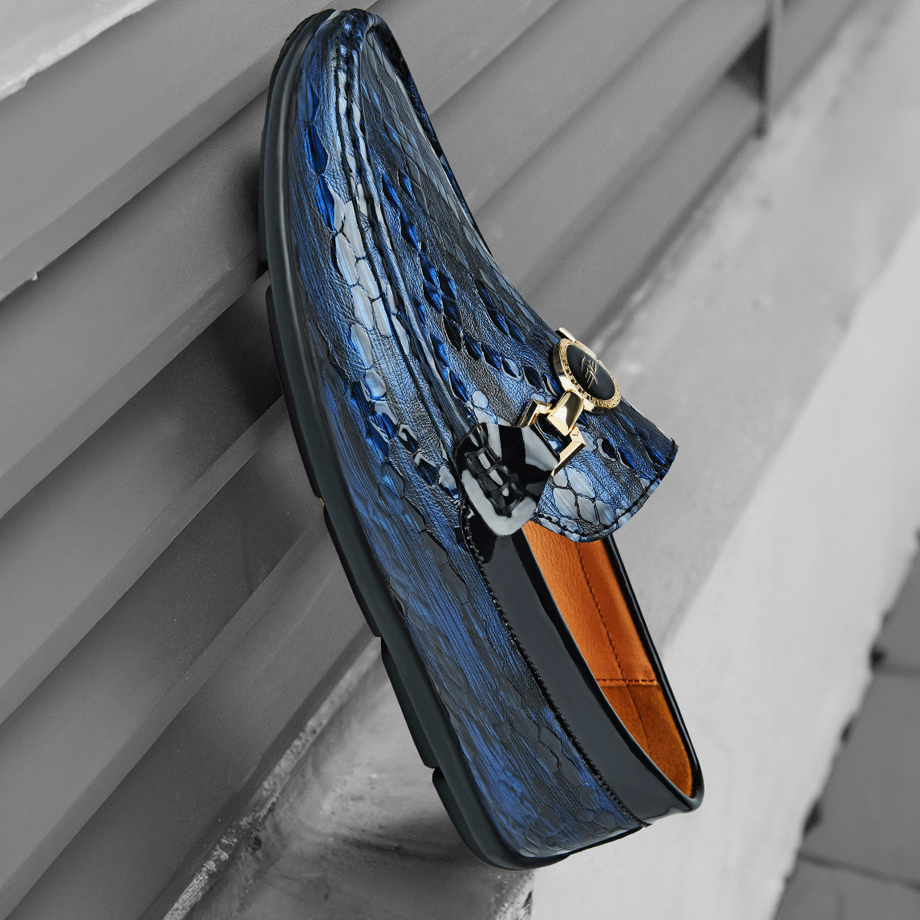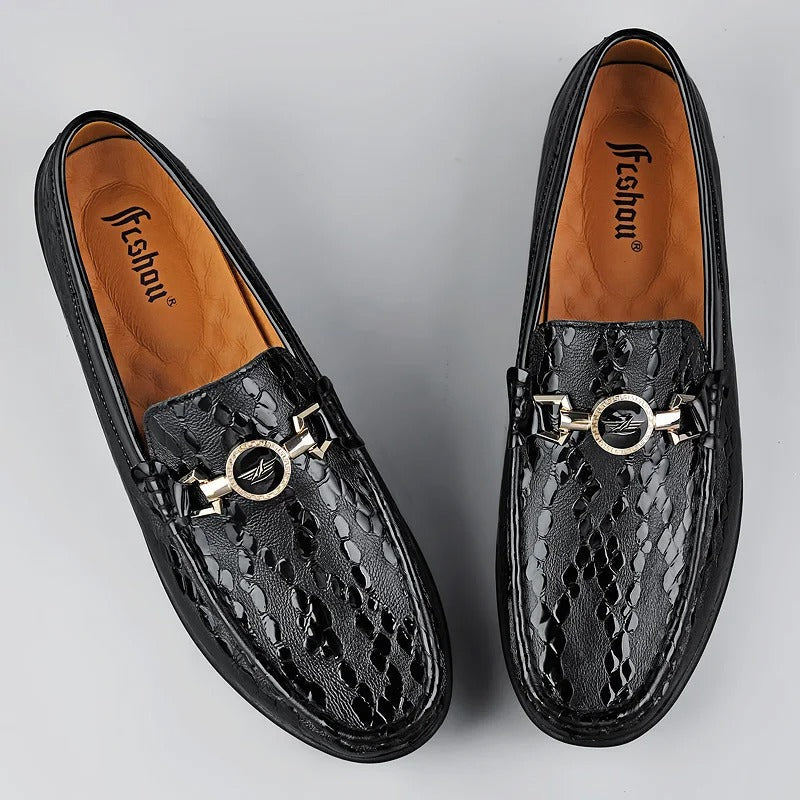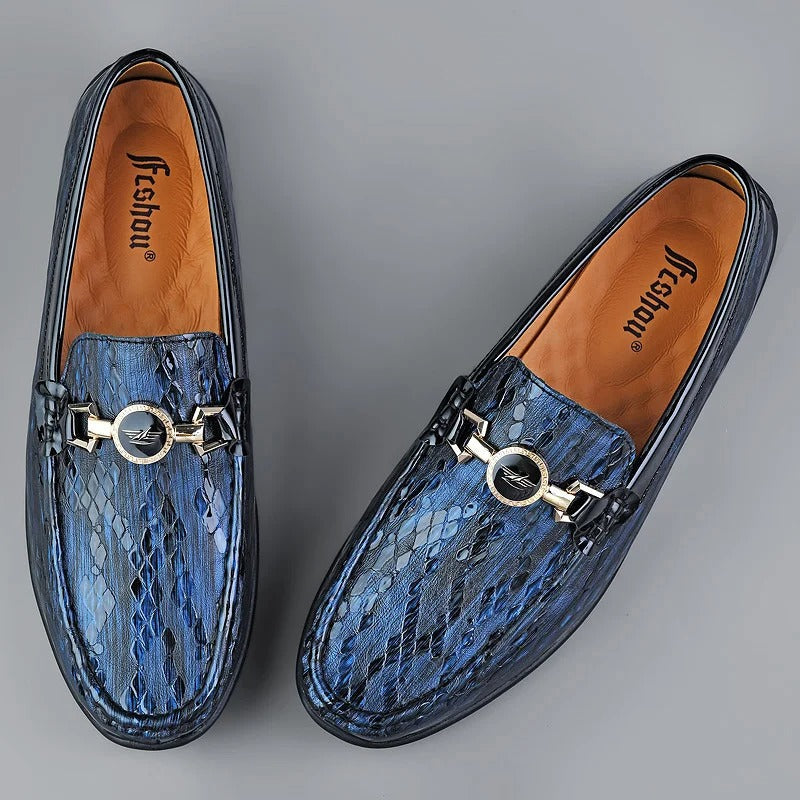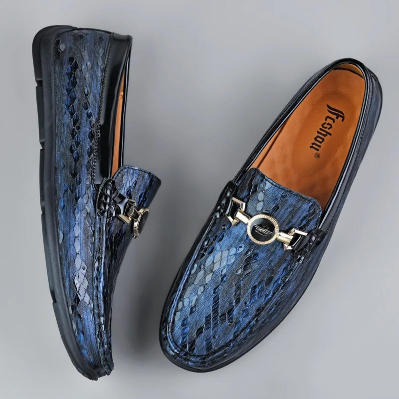 Crafted from premium genuine leather... Our best-selling slip-ons feature the most comfortable insole we've ever created. With their unique snake pattern. some are calling these shoes the best the industry has ever seen.