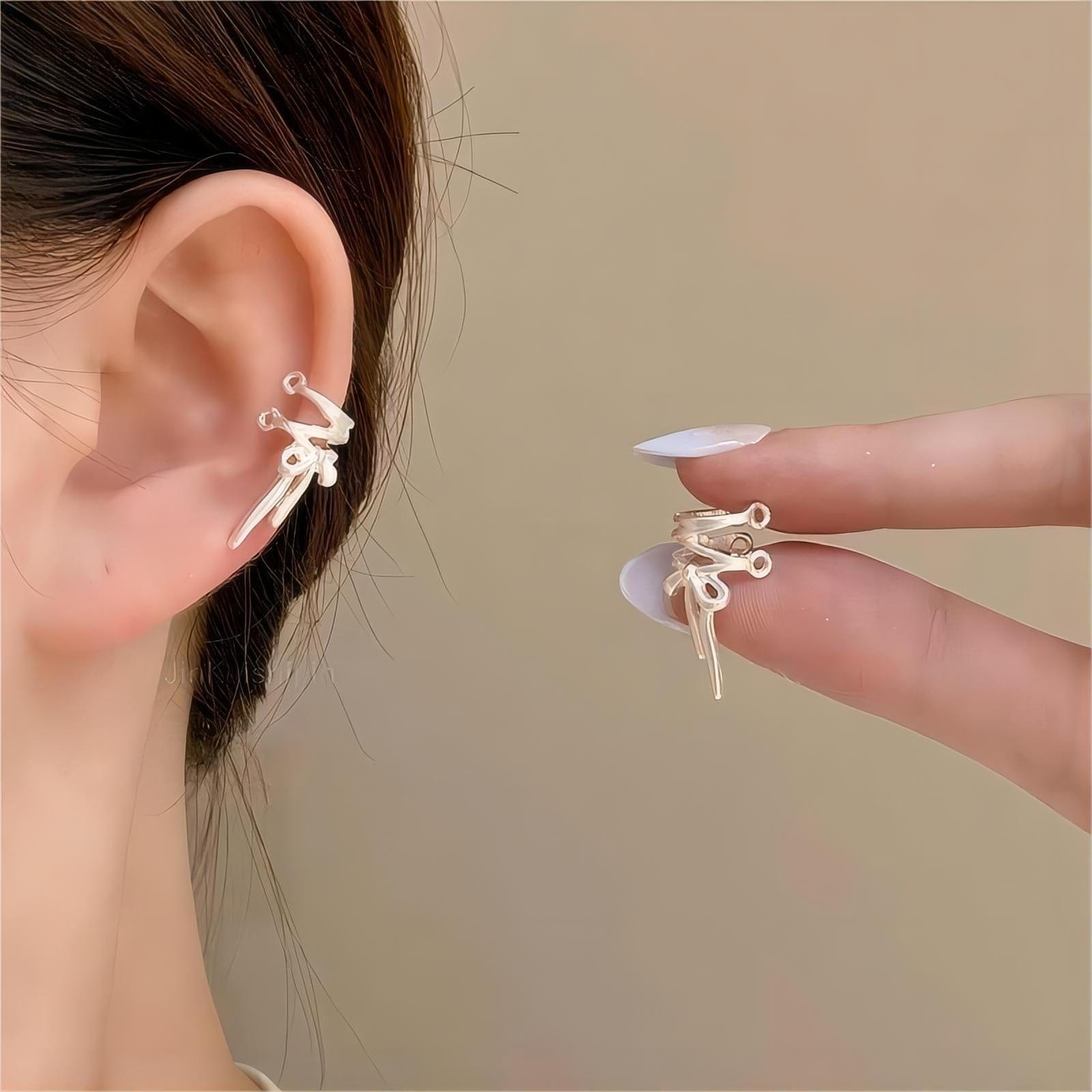 Stylish and timeless. these Geometric Ribbon Ear Wrap Earrings are perfect for any occasion. Crafted with high-quality silver. these earrings make a subtle statement with their exquisite design. The classic ribbon design adds a touch of elegance and sophistication to your look.