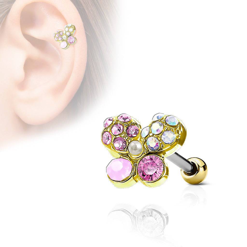 Gold IP Surgical Steel Multi Crystal Butterfly Ear Cartilage Barbell