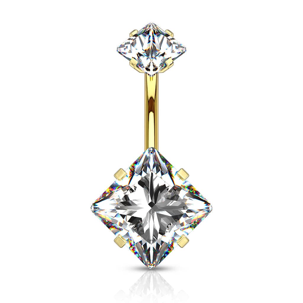 Gold Plated Surgical Steel Double Square White CZ Gem Belly Button Ring