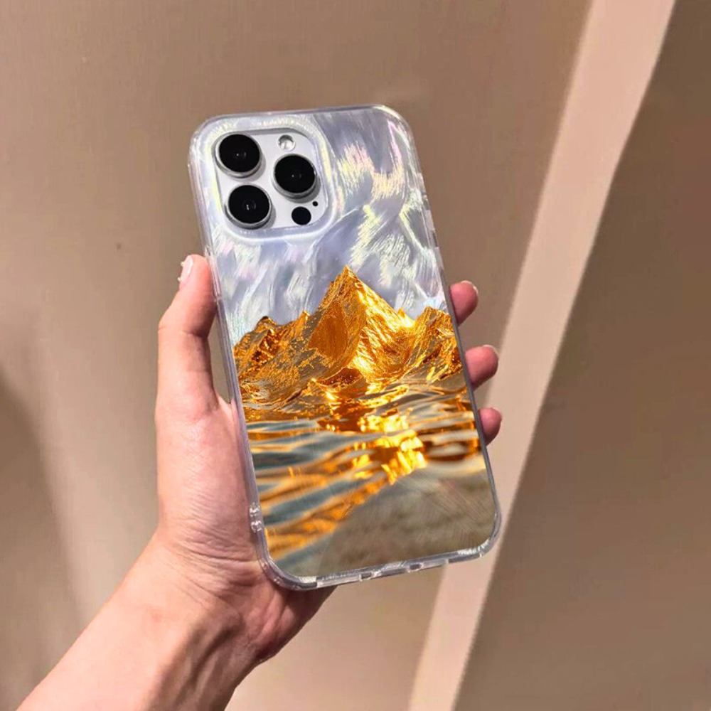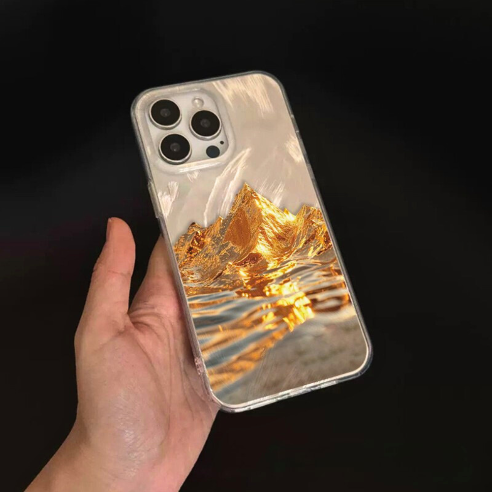 Carry a little sunrise with you—golden peaks glimmer against a soft. misty white backdrop. like morning light over the mountains.