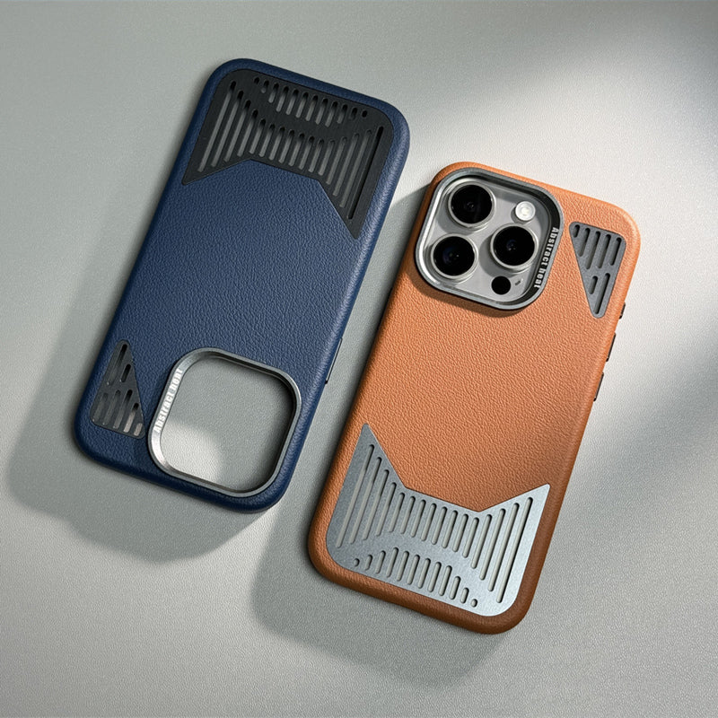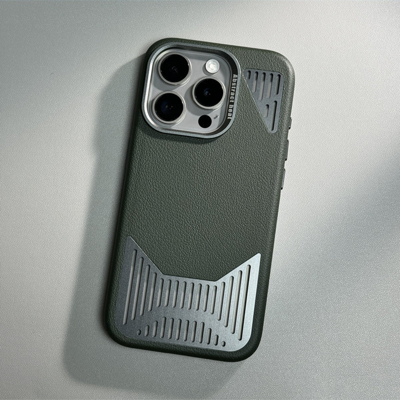 Keep your phone safe and looking sharp with a leather-like finish that feels just right in your hand. With added grip for those quick grabs. built-in heat bars for steady temperature control. and shock-absorbing corners to handle life's little mishaps. this case is made to keep up with your day-to-day without missing a beat.