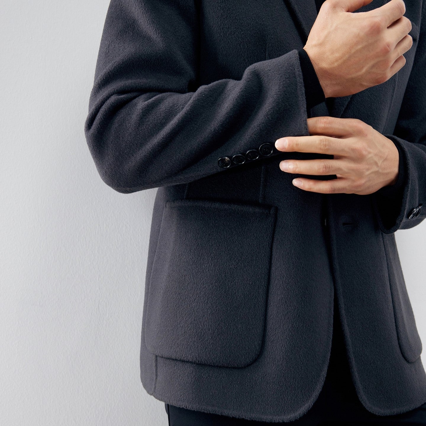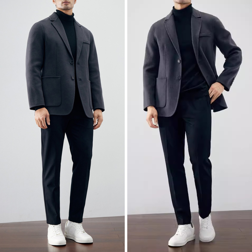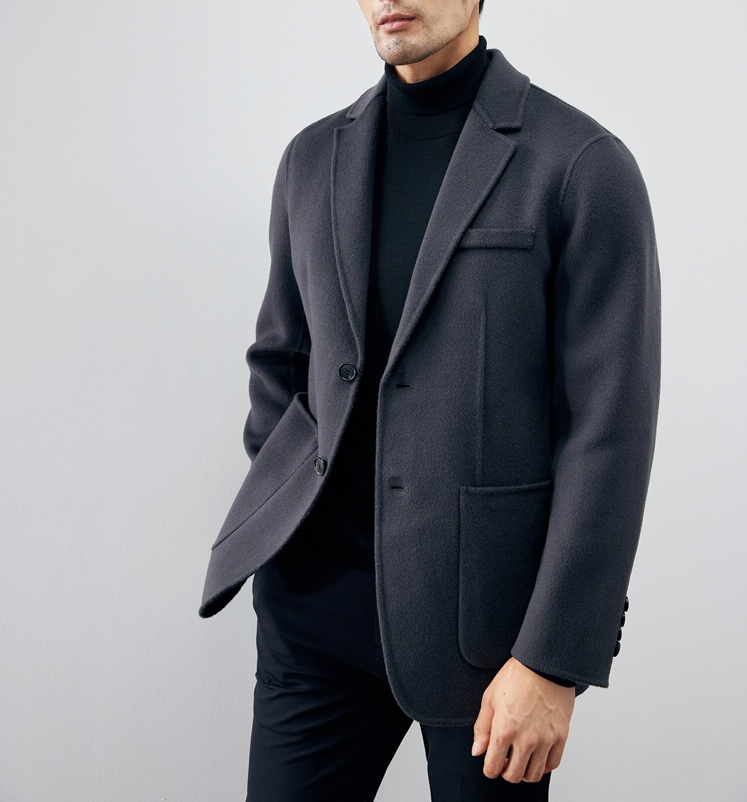 The beauty of this jacket is in its simplicity; a piece that values understated elegance and functional form. The art lies in the discreet details. from the softly textured warmth of 100% combed wool to the spacious pockets that hold your essentials with ease. With a tailored fit that blends comfort and sophistication. this is the jacket you reach for without the weight of unnecessary bulk.