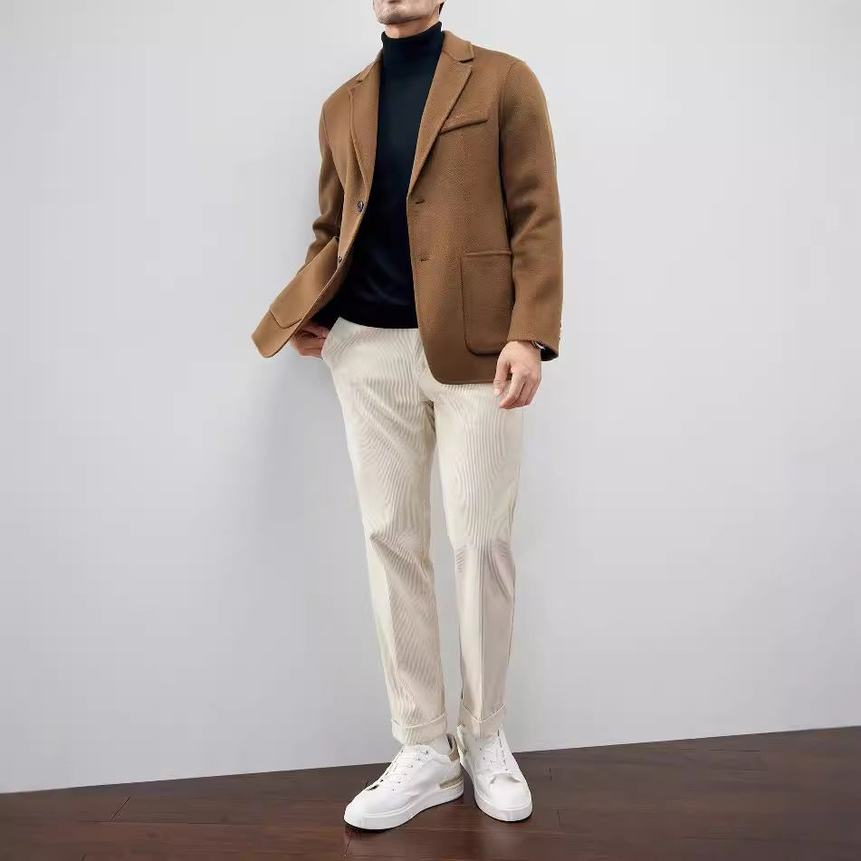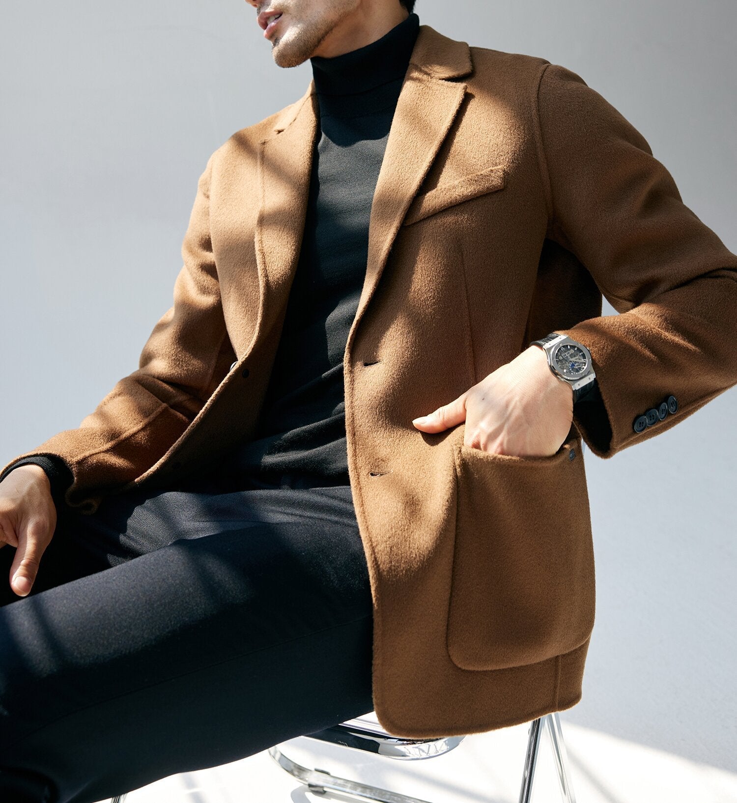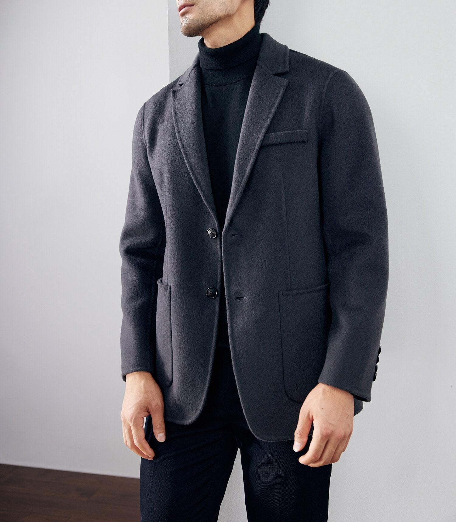 The beauty of this jacket is in its simplicity; a piece that values understated elegance and functional form. The art lies in the discreet details. from the softly textured warmth of 100% combed wool to the spacious pockets that hold your essentials with ease. With a tailored fit that blends comfort and sophistication. this is the jacket you reach for without the weight of unnecessary bulk.