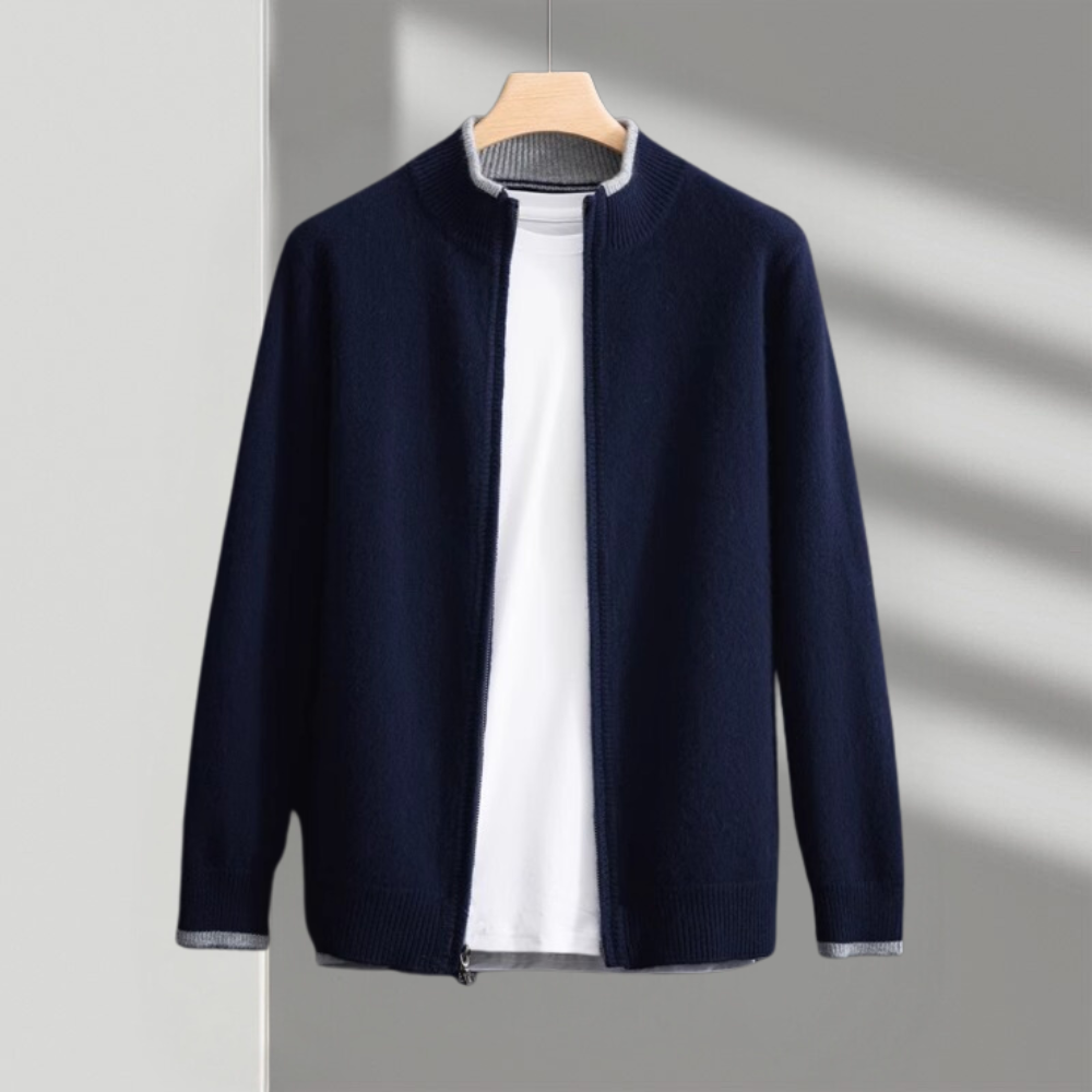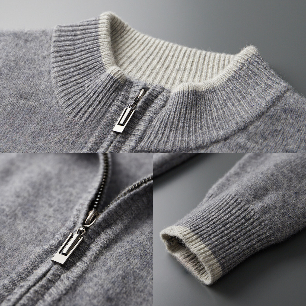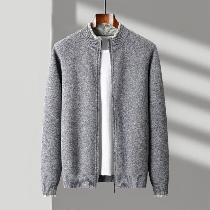 A hint of contrast at the collar adds subtle character. while the smooth zip closure makes it easy to throw on and head out.