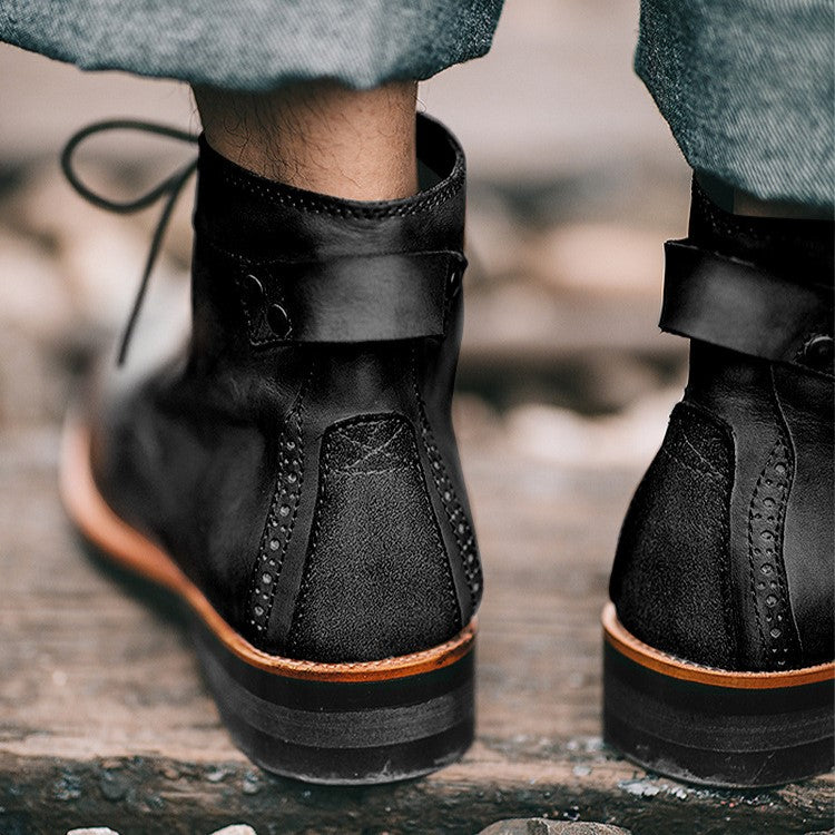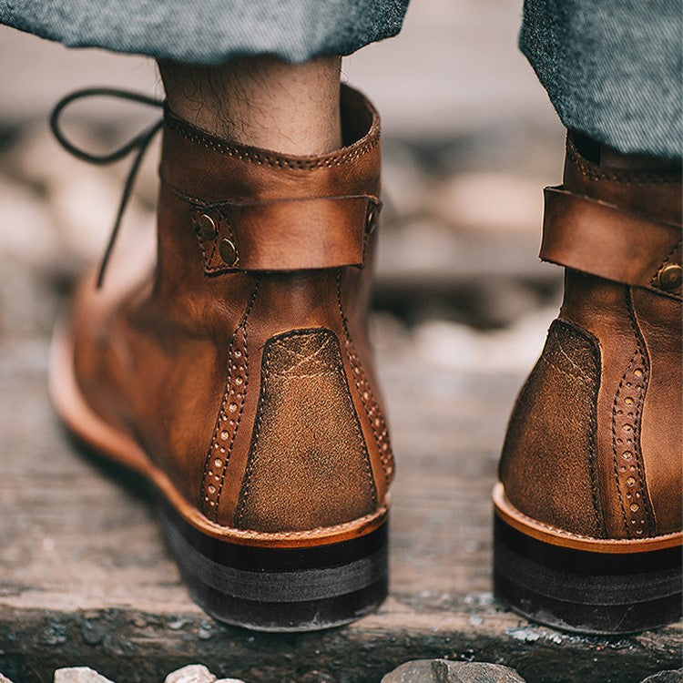 Command attention with these vintage-inspired leather boots. designed to merge rugged durability with standout style. The hand-finished faux leather showcases a rich. worn-in character that deepens over time. while reinforced stitching and a cushioned insole guarantee comfort and long-lasting wear.