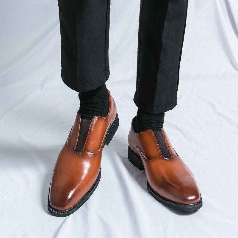 Presenting a streamlined design with a sleek. polished finish. these slip-on dress shoes bring a touch of royalty to every step. The cushioned insole offers all-day comfort. while the durable sole ensures they stand up to daily wear.