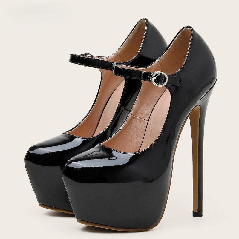 The glossy surface catches light like liquid metal. while the dramatic platform transforms your walk into a commanding presence that demands attention and respect.