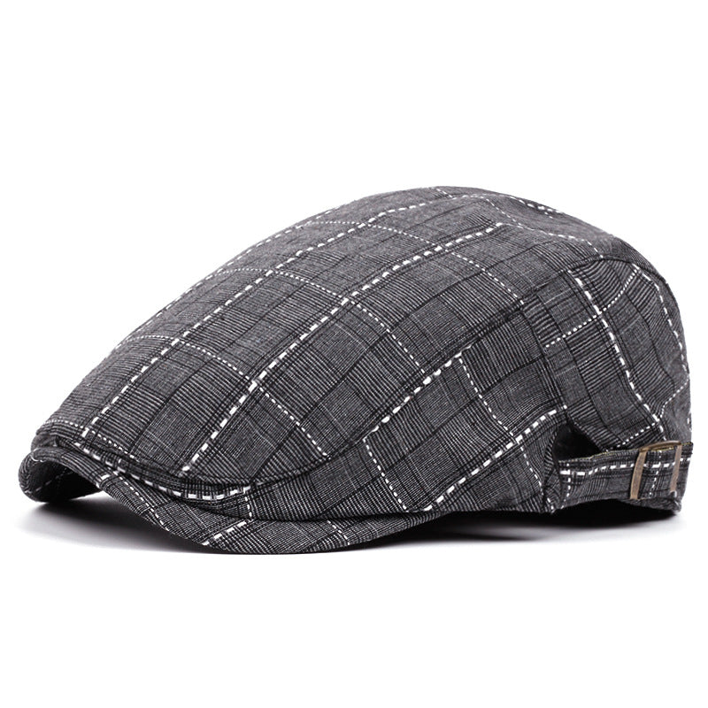 Own your look with this meticulously crafted cotton flat cap that combines classic plaid with practical function.