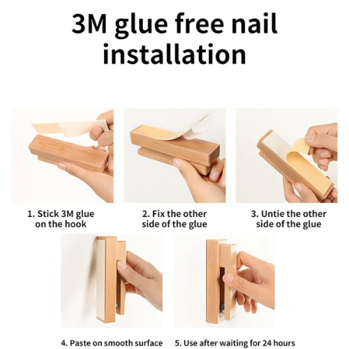 Crafted from smooth. polished wood and enhanced by a unique marble hanging feature. this hook offers an easy and nail-free installation. It exudes Nordic style and infuses any space with a modern aesthetic.