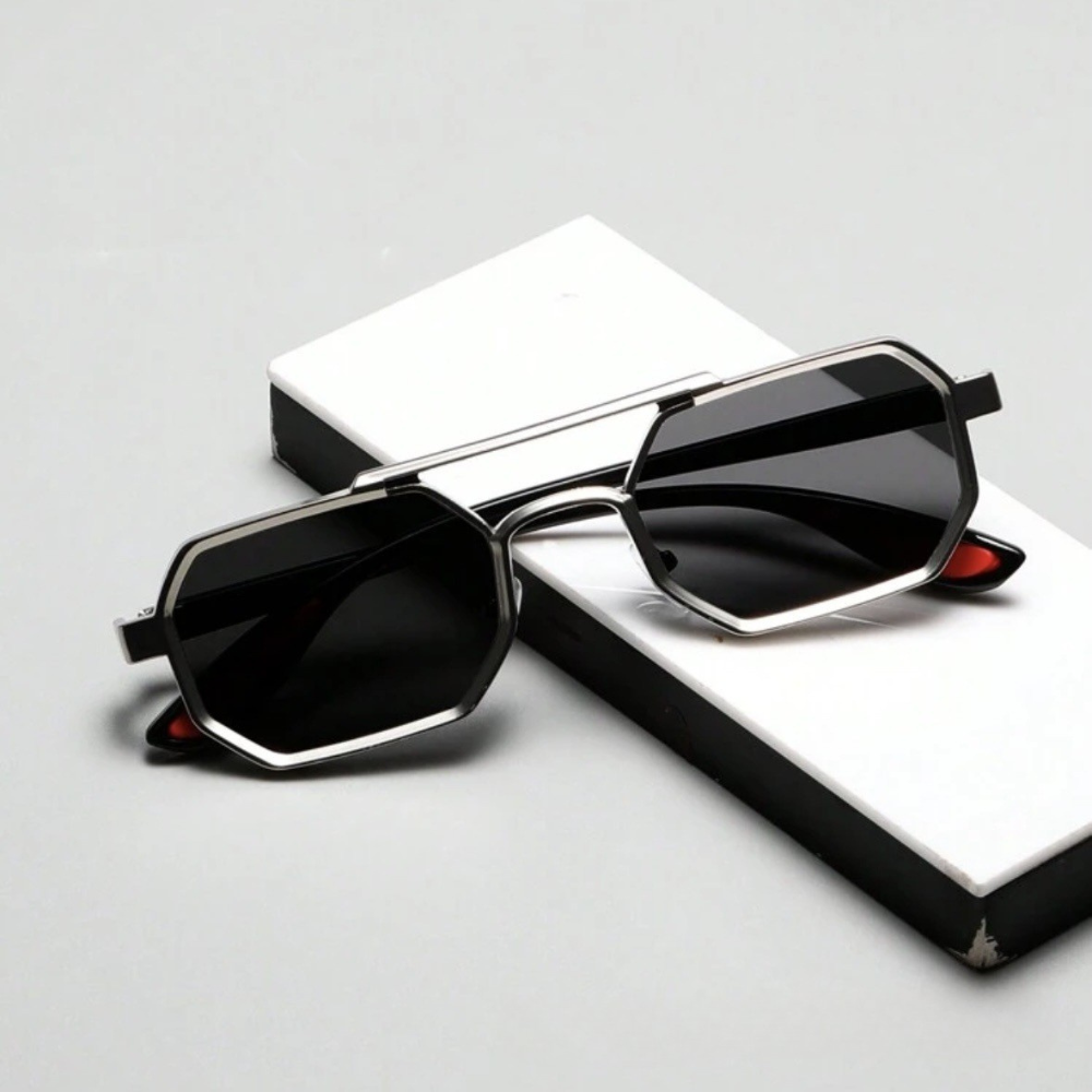 These bold geometric frames pack street-inspired style with technical precision—the metal accents catch eyes while UV400 lenses block harmful rays and harsh glare.