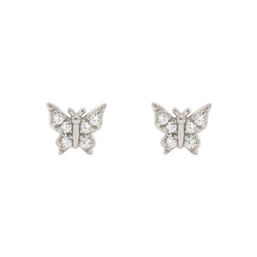Pair of 925 Sterling Silver Small Butterfly Gem Minimal Earrings