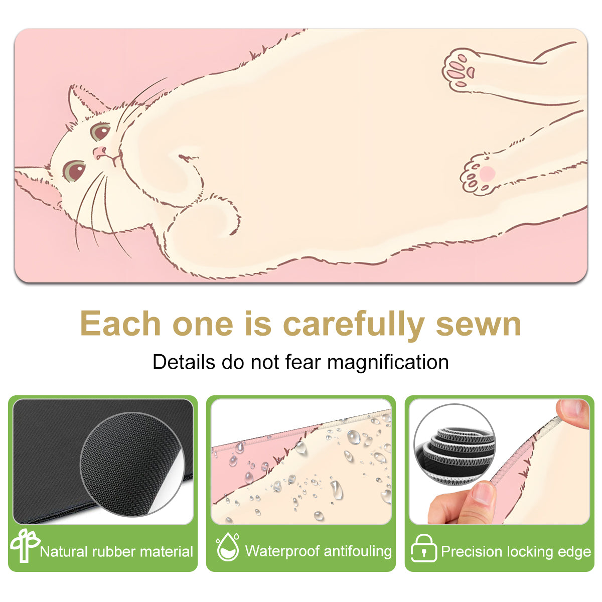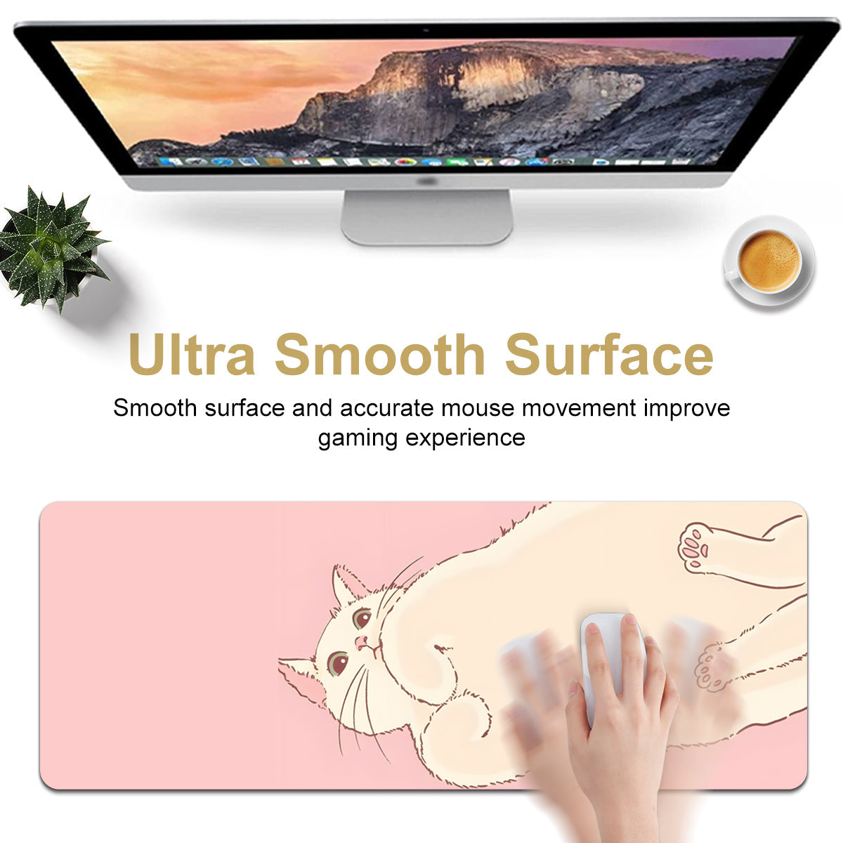 Meet your new desk bestie! This kawaii kitty mousepad brings the cutest stretchy cat vibes with its sweet pink and cream colors (^ω^). The super-soft. XL size gives you all the room to work and play. while the non-slip bottom keeps your furry friend from sliding around.