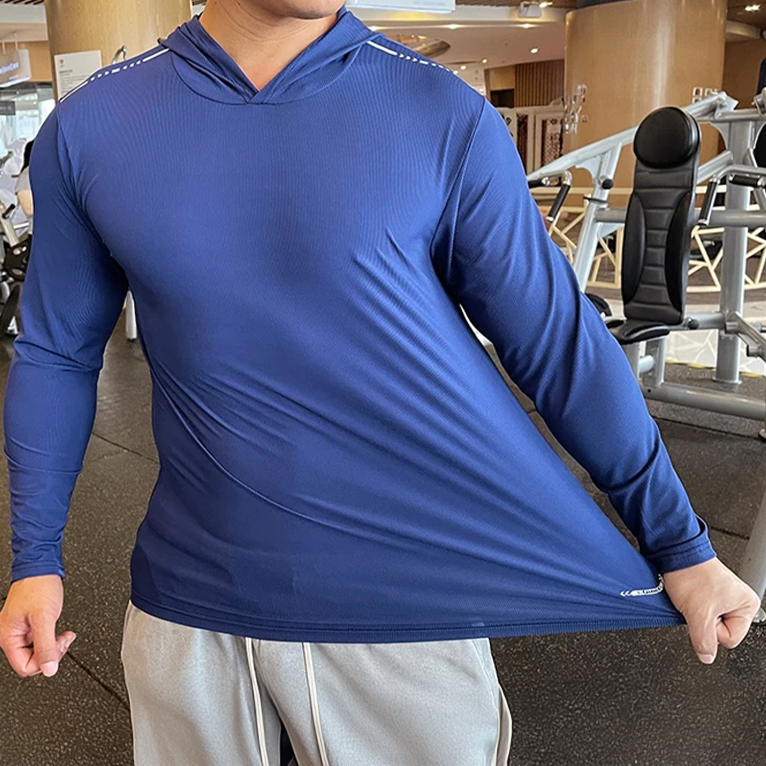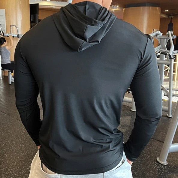 Maximize your training potential and stay motivated in this sleek hooded long sleeve. crafted from breathable and stretchy fabric that effortlessly accentuates your physique while keeping you comfortable during intense sessions.