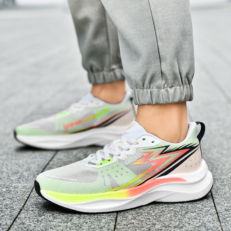 With these sleek sneakers. every step feels lighter. Featuring a bold design with a breathable upper. built to keep you cool and supported whether you're hitting the track or simply adding a spark to your everyday look. Furnished with a cushioned sole and advanced track grip technology for added traction and comfort.