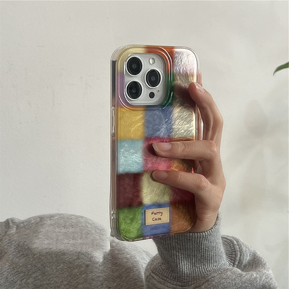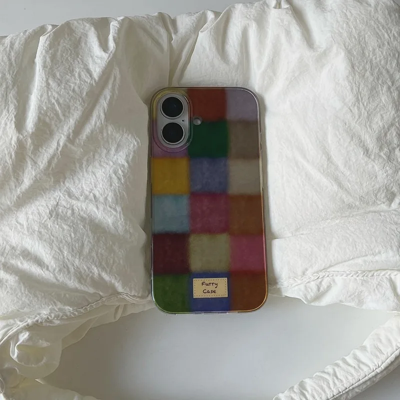Add a splash of personality to your phone with this playful checkerboard case. featuring vibrant. multicolored squares and a fuzzy texture that's as fun to touch as it is to look at.