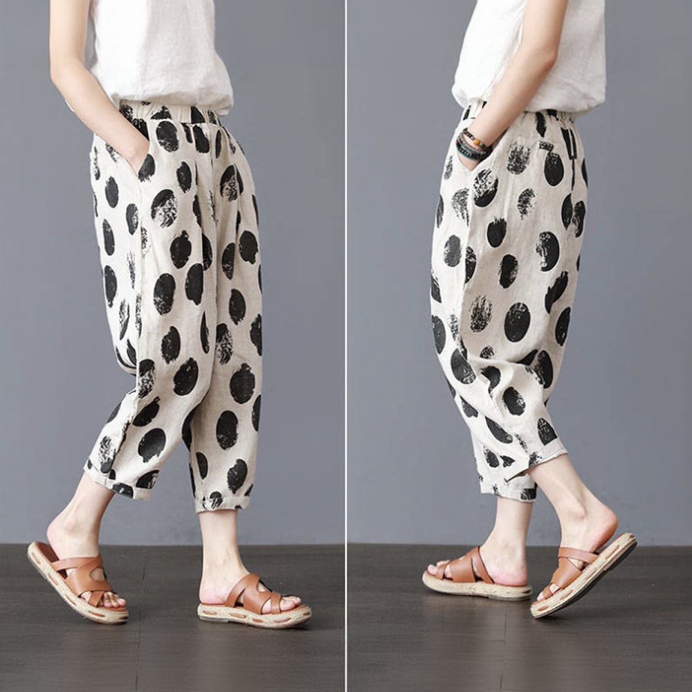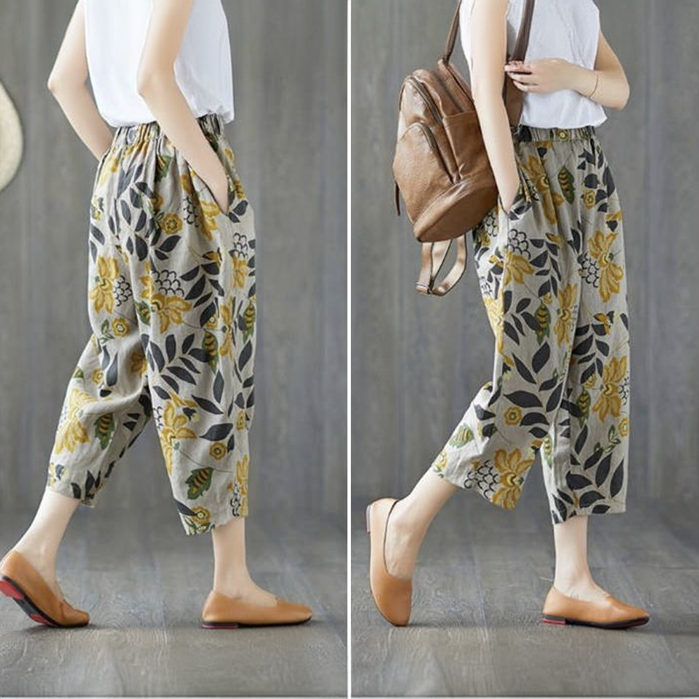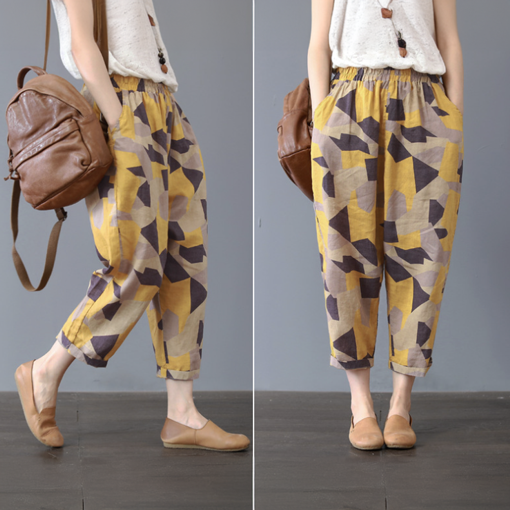 Breathable. comfortable. and perfect for summer. These Japanese-inspired pants are a must-have. featuring a linen-cotton blend. a relaxed baggy fit. and vibrant. unique patterns. Pair them with a simple top and flats for a chic and effortless look that will have all eyes on you.