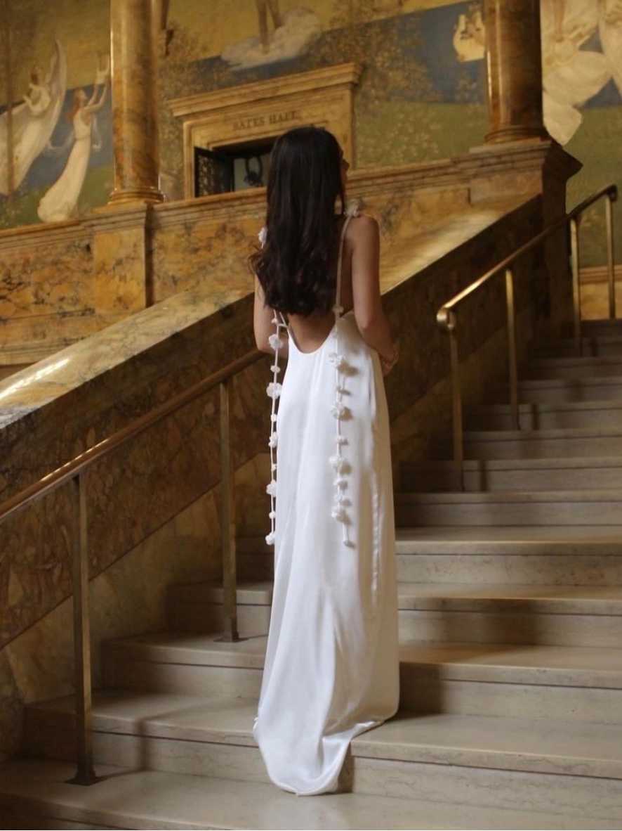 The standout feature of this gown is the exquisite 3D floral detail on the shoulder strap. which adds a touch of drama and romance to the overall design. The low back and sleeveless style showcase your natural beauty. while the fishtail skirt with a maxi length creates an elegant and timeless look.